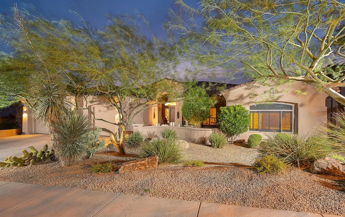 An updated take on southwestern style, this custom Santa Fe-style home truly is a desert gem. The exterior is accented by Mexican tile, chili pepper ristras, and gorgeous desert scape over a massive, private lot. The interior features comfortable, yet modern decor. The floor plan is open and encourages fun whether that be billiards, foosball, or lounging in the hot tub or heated pool. The backyard is a DREAM! This is the house where you'll create memories in a picture-perfect Arizona setting.