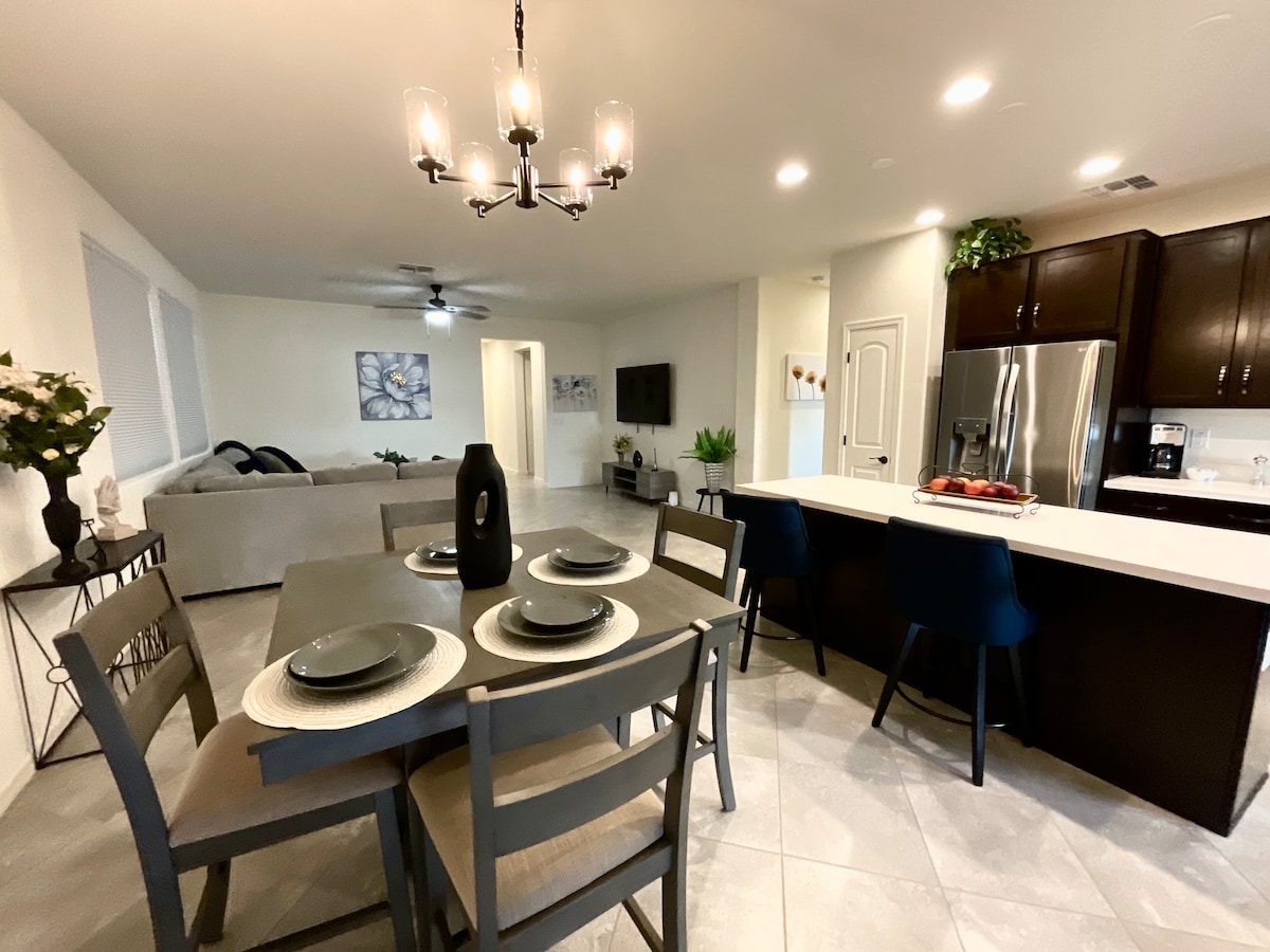 Welcome to Sunnyside Retreat! Our home has been newly remodeled with all your vacation needs in mind. It is minutes from Spring Training, State Farm Stadium, Peoria Sports Complex, and many other amenities. Several Entertainment Districts are nearby for great shopping and restaurants. Sunnyside has a diving pool (NOT heated), hot tub, corn hole, VR headset, foosball table and much more for your home entertainment. We didn’t forget about the little ones, as they have a play coffee bar and games!