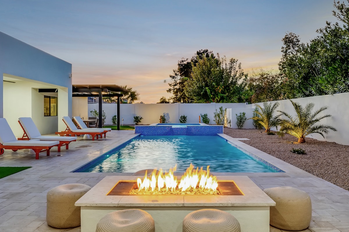 Welcome to the Handcrafted Home in the desert. There is a large outdoor area with a heated pool, bbq, and propane fire table. The heating of the pool is included in the cost of your stay from October-May. You will enjoy entertaining in the fully equipped chef’s kitchen with updated appliances and an air fryer in the oven. The comfy beds are memory foam and the bathrooms are both updated. Skip the game day/concert traffic and opt for an easy walk. We are located 0.8 miles from State Farm Stadium.