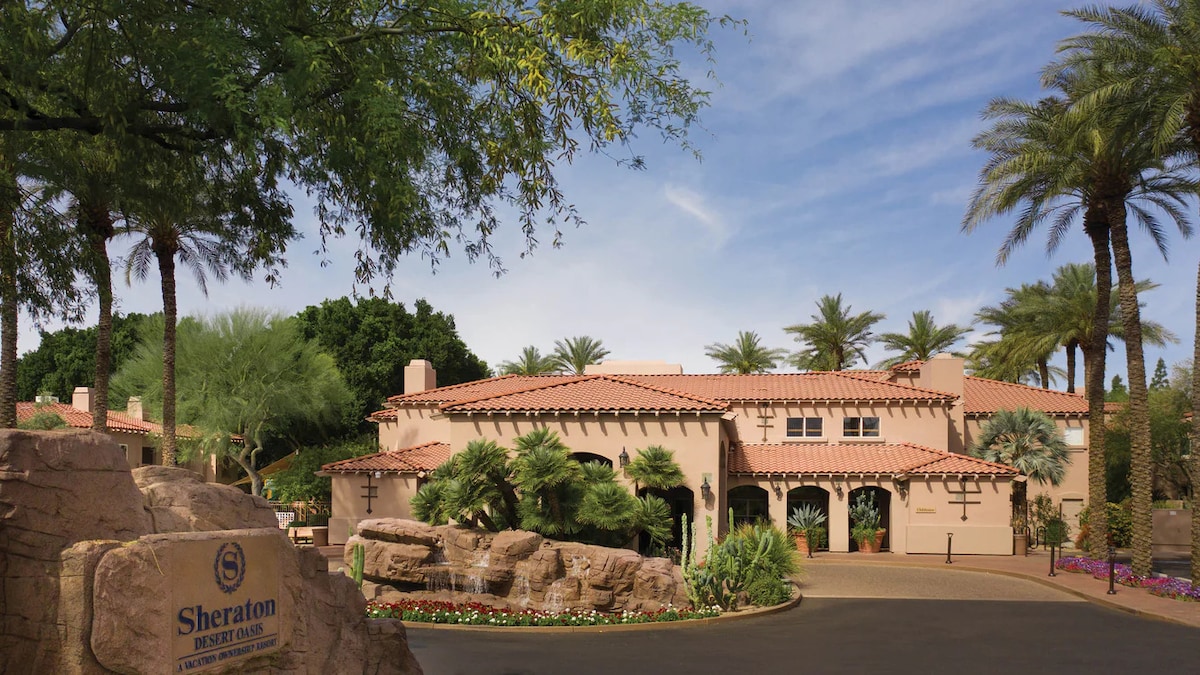 This is Marriott's timeshare, ideally placed, just a short drive from the Grand Canyon, Sedona and other attractions. Enjoy a few rounds of table tennis, exercise in our fitness center or swim in one of swimming pools while your kids play on the splash pad at our family-friendly resort in Phoenix. Indulge in a poolside meal at Canyon Springs Bar & Grill. Units are available in 3 sizes: Studio, 1 and 2 bedrooms. Price is typically 25-50% higher for each upgrade. Please inquire about availability.