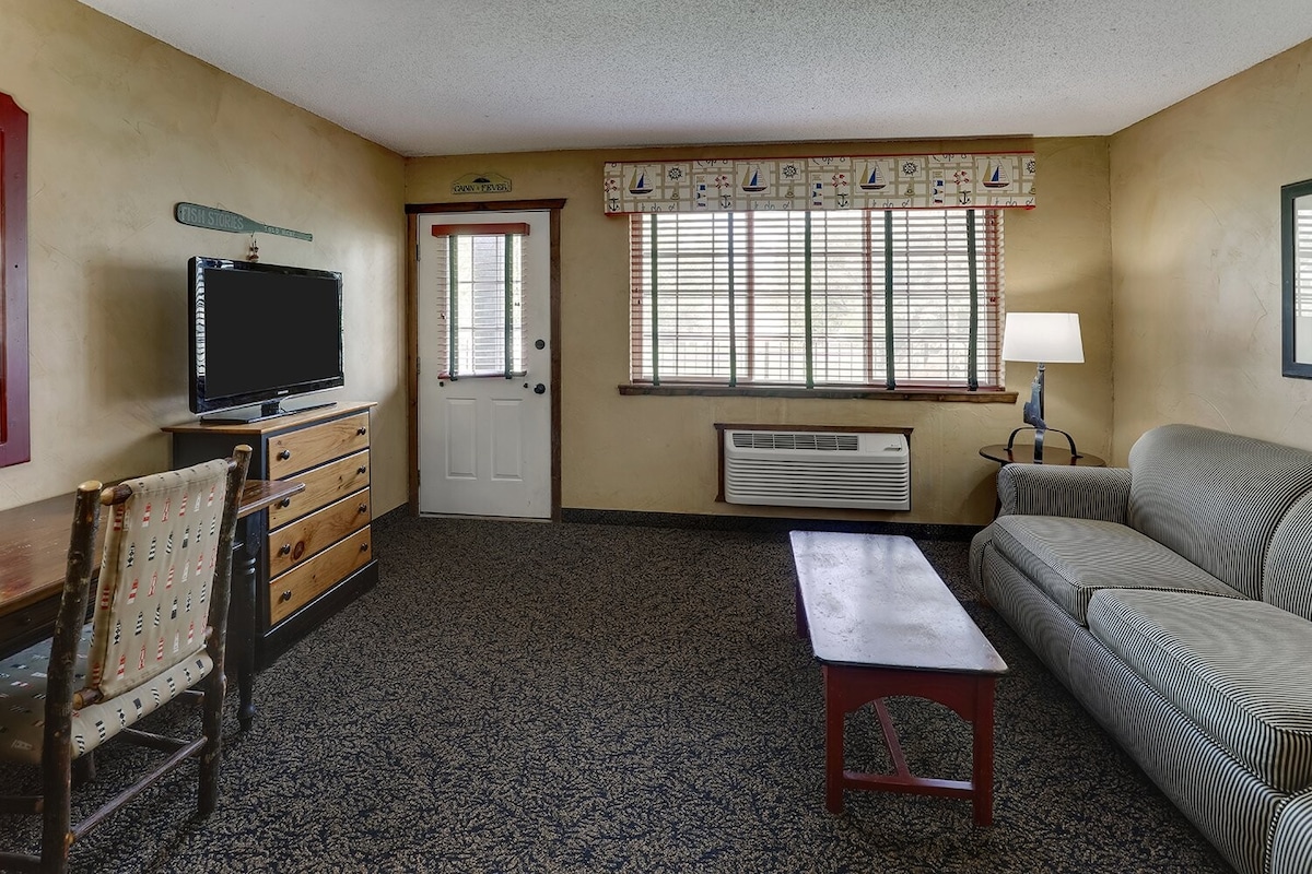 Enjoy the comforts of the Washington suite at the Carnegie. The bedroom is behind barn style doors separating it from the living area. Children or extra guests can sleep on the sectional sofa. The Carnegie is within walking distance of coffee shops, restaurants, parks, movie theatre, the Illinois River and local shops.