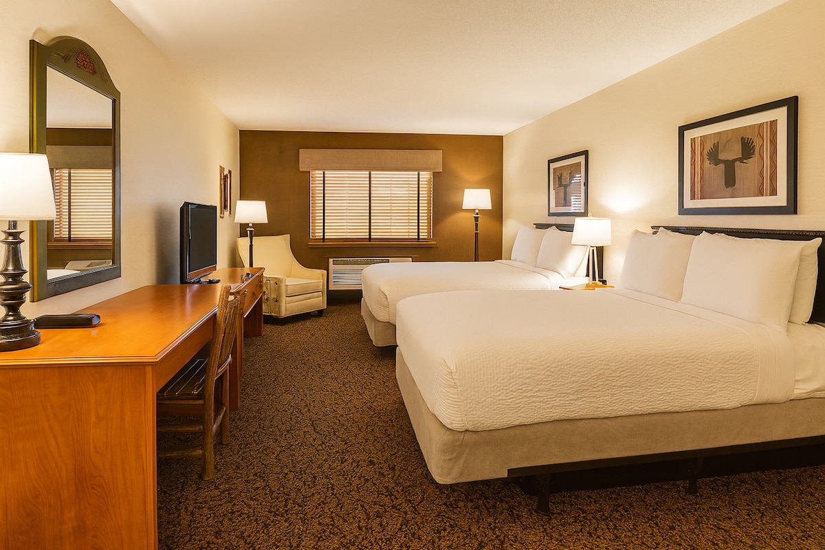 Spacious room with 2 queen beds and a view of historic downtown Chillicothe. Enjoy your stay in this unique converted Carnegie Library built in 1915. The Carnegie is within walking distance of coffee shops, restaurants, parks, movie theatre, the Illinois River and local shops.