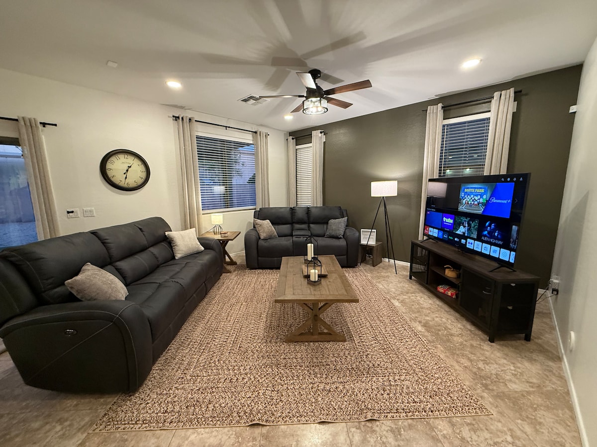Experience the beauty of Arizona’s Sonoran Desert at this 3-bedroom, 2.5-bath home located in the Arrowhead Ranch area of Glendale. Our beautiful home is perfect for a relaxing getaway and is just a short drive to golf courses, fantastic restaurants, parks, only 10 minutes to Westgate, AZ Cardinals stadium, as well as the Seattle Mariners and LA Dodgers spring training facility. We have a space that caters to your group's every need. Perfect for long-term stay