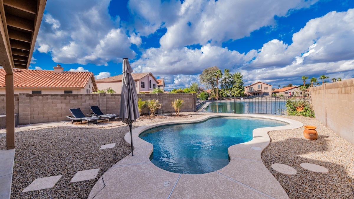 Discover a coastal inspired Paradise in Peoria, beautifully curated to give you a serene retreat. This charming house offers 3 cozy bedrooms and 2 full bathrooms. Relax and unwind by the private pool after a day of exploring all that the surrounding area has to offer. Located centrally, you'll be close to bustling sport stadiums, premier shopping centers, and exciting entertainment venues. Whether you're here to explore or unwind, this home offers a trendy, convenient base for your stay.