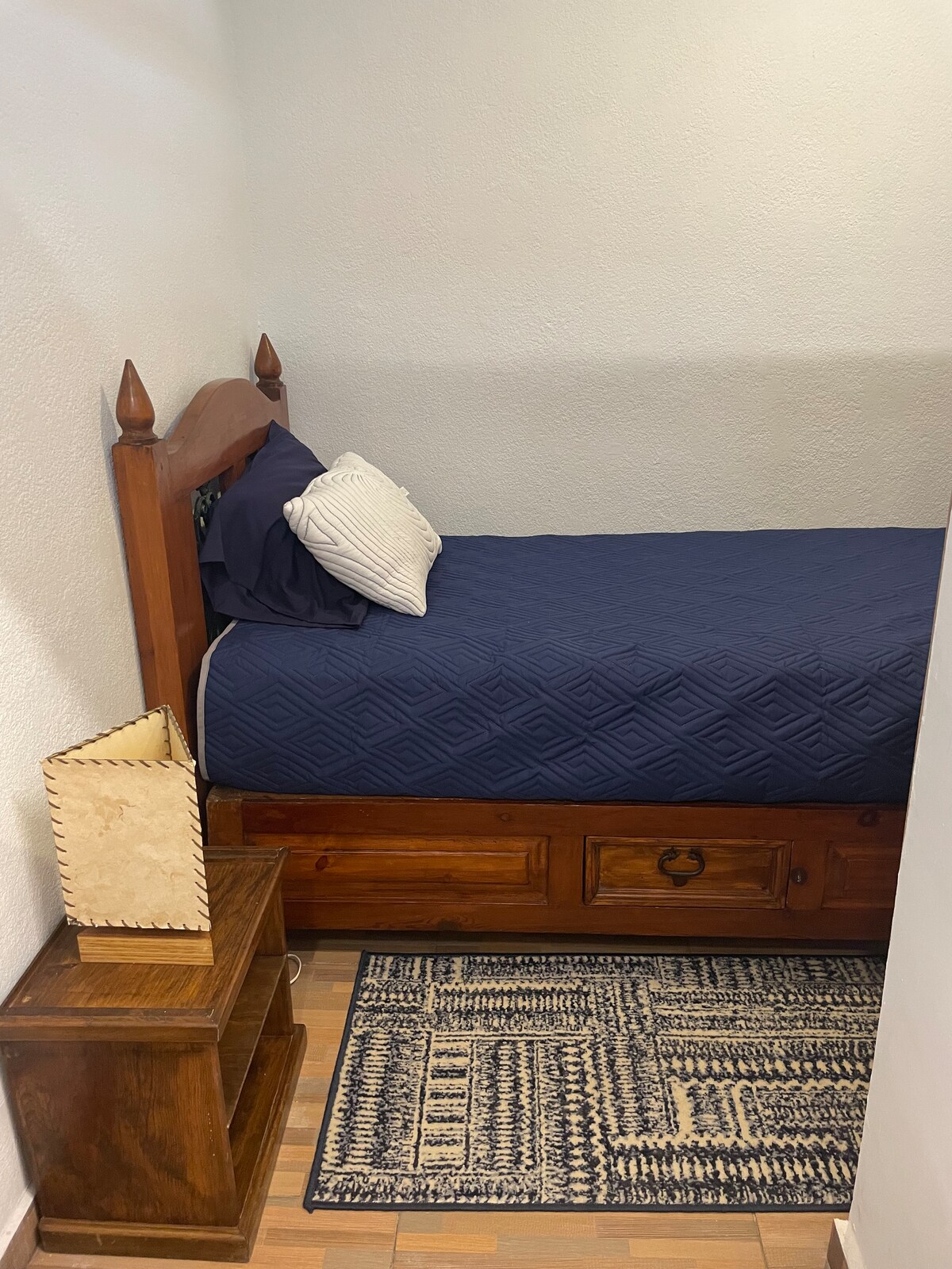 Es un pequeño estudio en el tercer piso ( azotea) independiente al departamento , pero con todo lo necesario para tener cómoda estancia , tiene frigobar y parrilla, y todos los utensilios necesarios para cocinar. Baño independiente , tv por cable , wifi , y closet; a un lado tenemos una prequeña y cómoda terracita con sillas Acapulco y plantitas para salir a tomar aire fresco y relajarse
