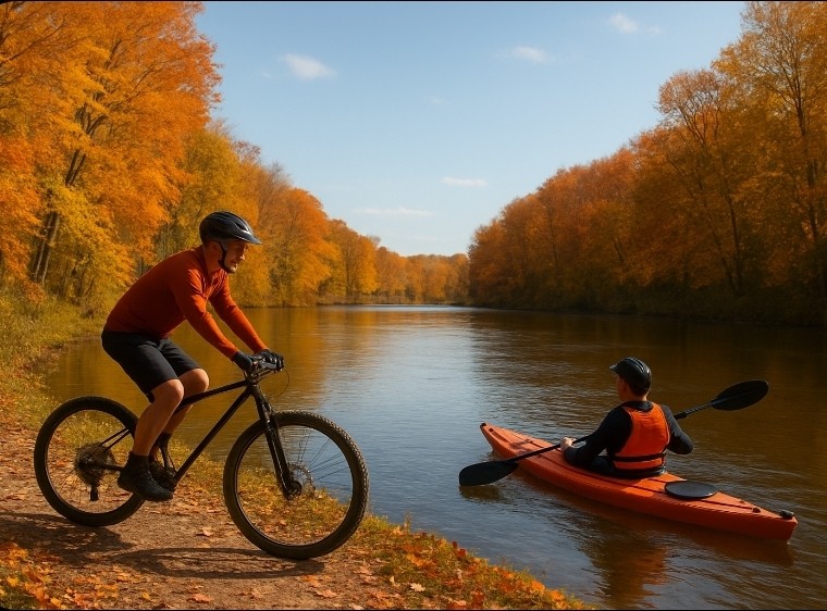 The Adventure Studio is like stepping into a treehouse that boasts stunning views and a cozy relaxing deck overlooking 200' of shoreline on a great fishing lake. Inside enjoy views from two full walls of windows, a skylight and vaulted ceilings. Well appointed kitchen for a several day stay. A fire pit, pedal boat, paddleboards, wooded acreage, a mile long nature hiking, biking trail and access to other adventures. All on a quiet tree lined road, perfect for peaceful strolls at sunset.