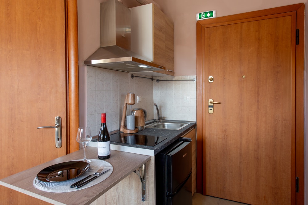 Refurbished modern apartment of 52 sq. m. in the heart of the historical city centre, just opposite of St. Demetrius church, on Aristotelous street axis. The apartment has great panoramic views of the city as it's on the 7th floor. Up to four persons can sleep in the apartment, two on a double bed and two on a sofa-bed. There is a lift available up to the 6th floor and stairs that lead to the 7th.