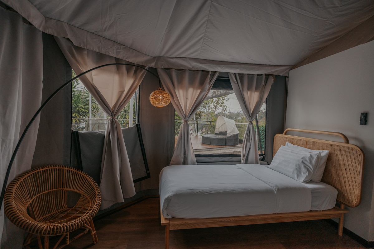 Escape to our peaceful Nadi Tent by Nadi Glamping Suites, designed for privacy away from the city bustle, with a touch of nature. Enjoy a serene retreat in this cozy wooden cabin, offering the perfect blend of rustic charm and modern comfort. The fully air-conditioned cabin features a Queen Bed, and a fully equipped private en-suite bathroom. Hotel grade, 13-inch bed mattress is provided with high thread count linens to provide maximum comfort.