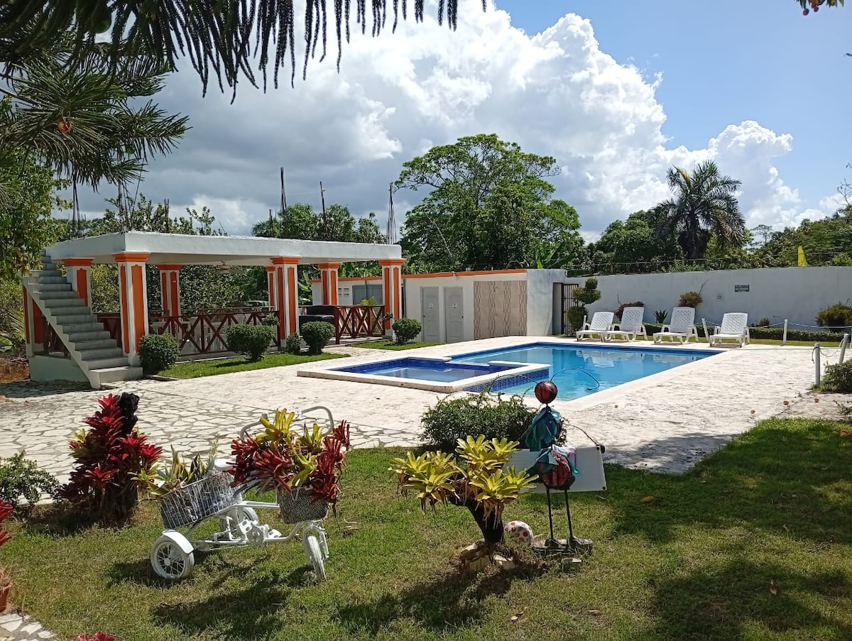 Este alojamiento único tiene mucho espacio para que disfrutes con los tuyos, con 4 habitaciones habilitadas para 14 personas, 4 baños, sala, comedor, cocina totalmente equipada, sala amplia con una Smart tv y wifi de los mas rápidos de toda la zona parqueos exclusivos dentro de la propiedad, una espectacular piscina, BBQ y acceso directo a la playa y sobre todo muy cercano al pueblo de palmar de ocoa, disfrutaras de unas vacaciones de ensueños.