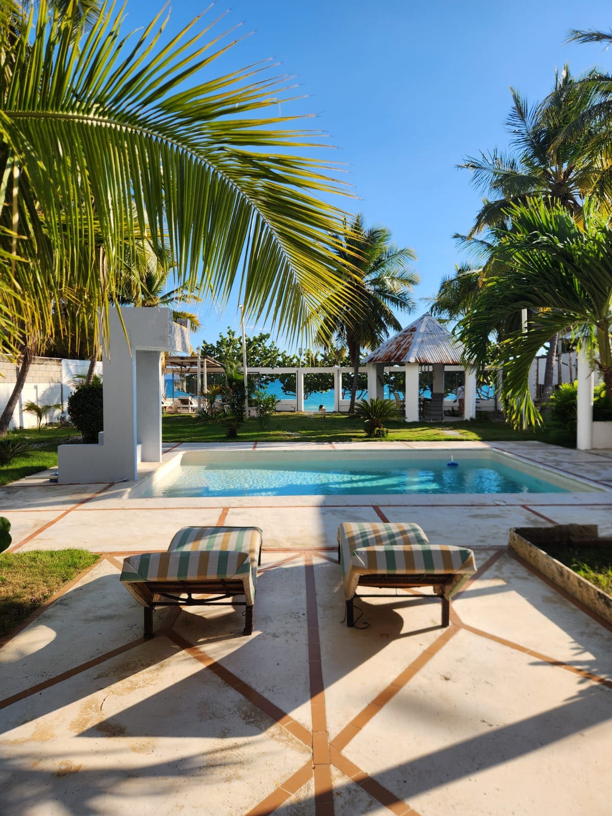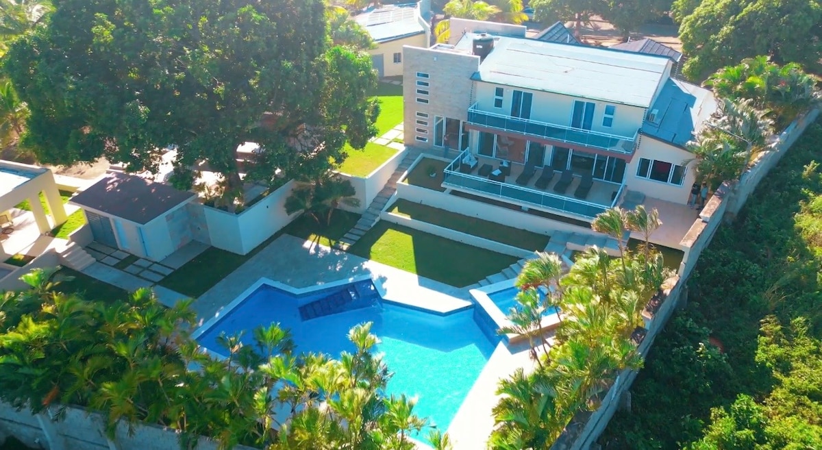 propriéda dentro de un jardin tropical frente a la playa ,con 8 habitaciones con baño privado aire condicionado abanico 2 piscinas agua dulce y sala en una zona résidencial espacio con BBQ y horno cocina equipada y cocina al bar con neveras freezers ,désayuno incluido ,planta y inversores ,parquéo privado vigilado con camera playa salvaje acceso directo wifi con CLARO y ALTICE télévisions en sala SKY y CLARO