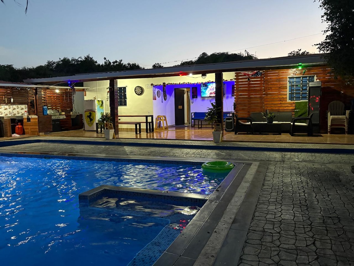 You've just found our little piece of paradise! Welcome to your next new home away, luxrious villa located only 15 min from the Las Calderas Beach. Birthdays, Babyshowers, 15th birtdays, etc are Welcome! Send us a message and ask us how! Equipped with Starlink, TV's, A/Cs. Games, Pool and Jacuzzi, this speace is fully ready for your family!