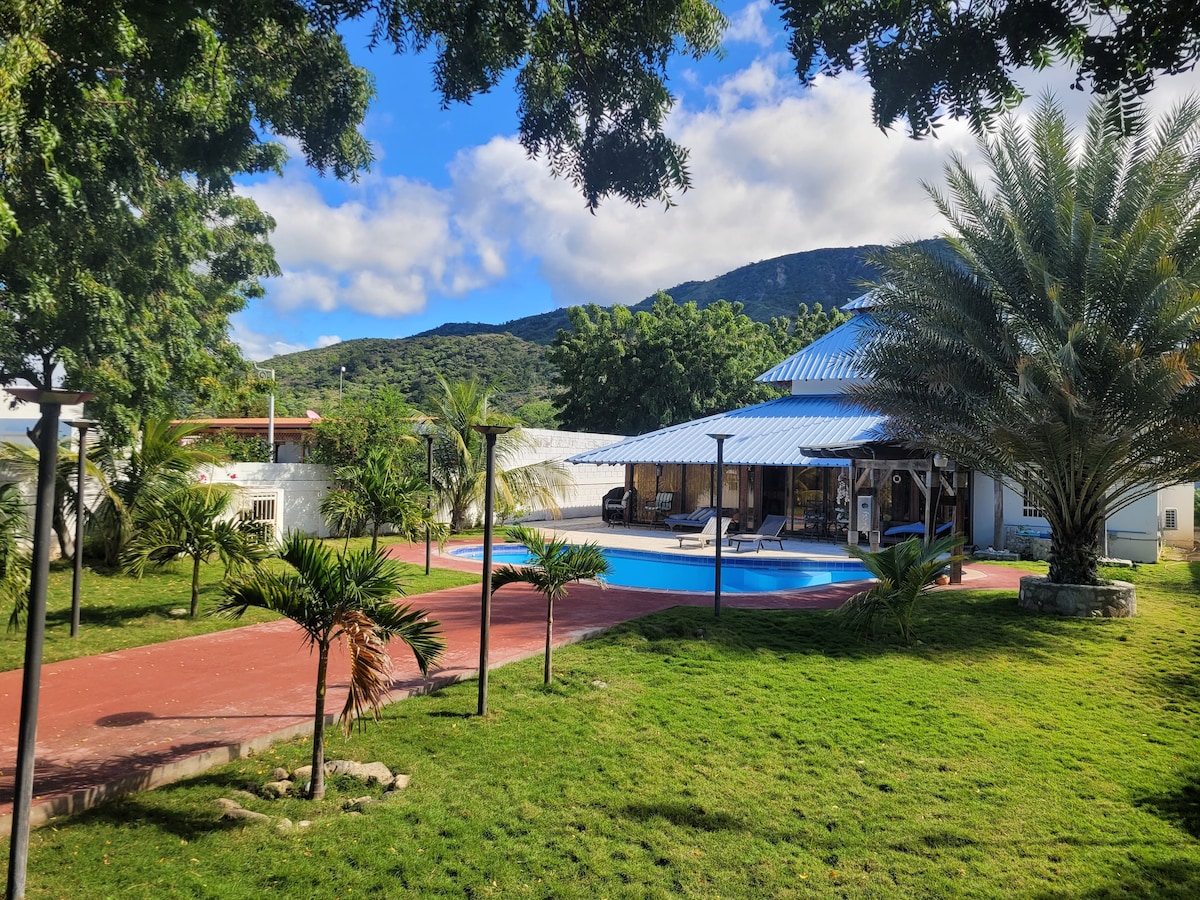 PROPIEDA dentro de 5300 métro cuadrado con frutales ,palmas ,coco piscina adulto ,piscina niños salon de jardin comedor de jardin BBQ ,wifi télévision cancha de volleyball de playa cancha para bolas 4 habitaciones spaciosa de doble cama con aire ,abanico nevera 2 habitaciones de 1 cama todas con baño privado ,3 sofa cama capacida total 20 adultos ,playa linda a 2 minutos acceso por un callejon zona résidencial muy tranquilo cocina équipada ,névera estufa micro ondo liquadora parquéo cubierto