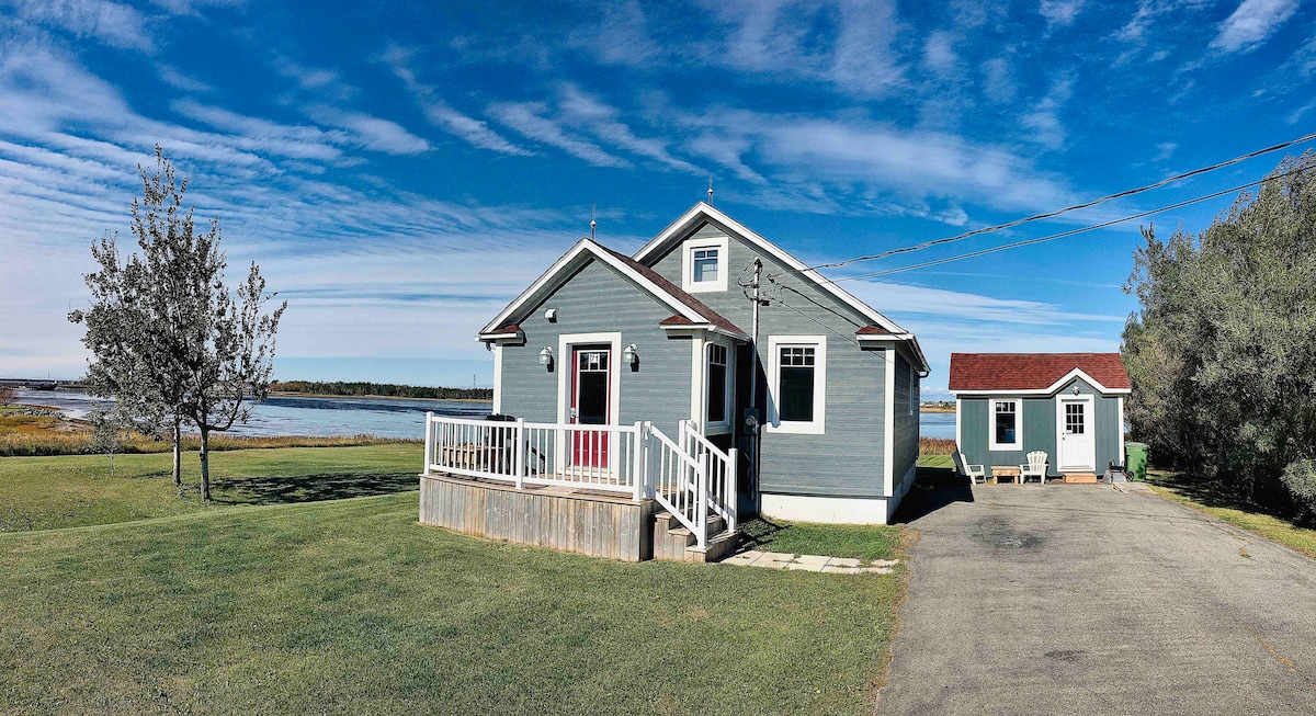 Profitez de l'atmosphère stylisé Acadien de ce chalet au bord de l’eau et au centre de tout. Avec accès privé de la plage où on peut pêcher des coques, faire de la paddle board etc. Ne manquez pas les couchers de soleil du patio. Enjoy the stylish Acadian atmosphere of this beachfront cottage close to everything. Private beach access where you can dig clams, fish bass, enjoy your paddle board, etc. Do not miss any sunsets while sitting on the back patio.
