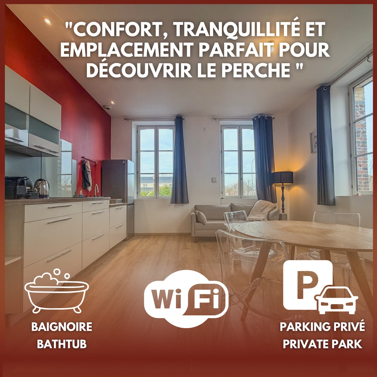 Gîte au cœur du Perche (à 10 min de Bellême et 50 min du Mans) pouvant accueillir jusqu'à 5 personnes Le logement est situé à l'étage d'une ancienne dépendance et se compose d'un grand salon, une salle à manger avec cuisine ouverte, 2 chambres, 2 salles de bain et un WC séparé. La maison est ouverte sur un jardin où vous pourrez vous relaxer, profiter du calme de la campagne percheronne et admirer notre potager. Au plaisir de vous accueillir dans notre havre de paix !