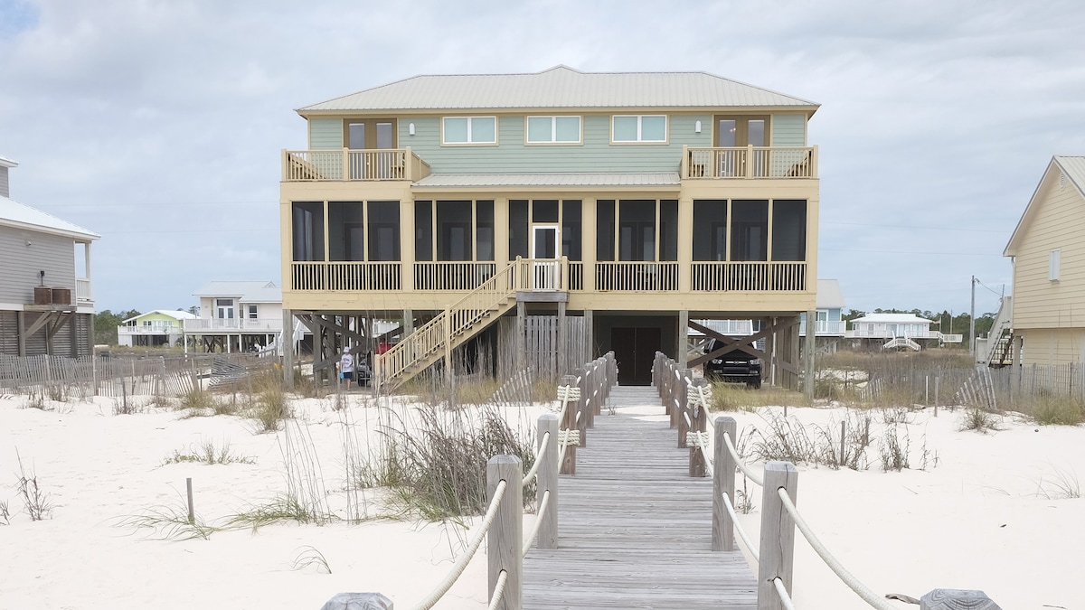 Beautiful spacious beachfront house located directly on the Gulf of Mexico in Fort Morgan, AL. Two stories with four bedrooms overlooking the ocean. Bottom level bedrooms open out onto screened porch. Upper level bedrooms have their own private balconies. Four twin beds in bunk area between two upstairs bedrooms/baths. Sleeps 12. Perfect for a multi family getaway!