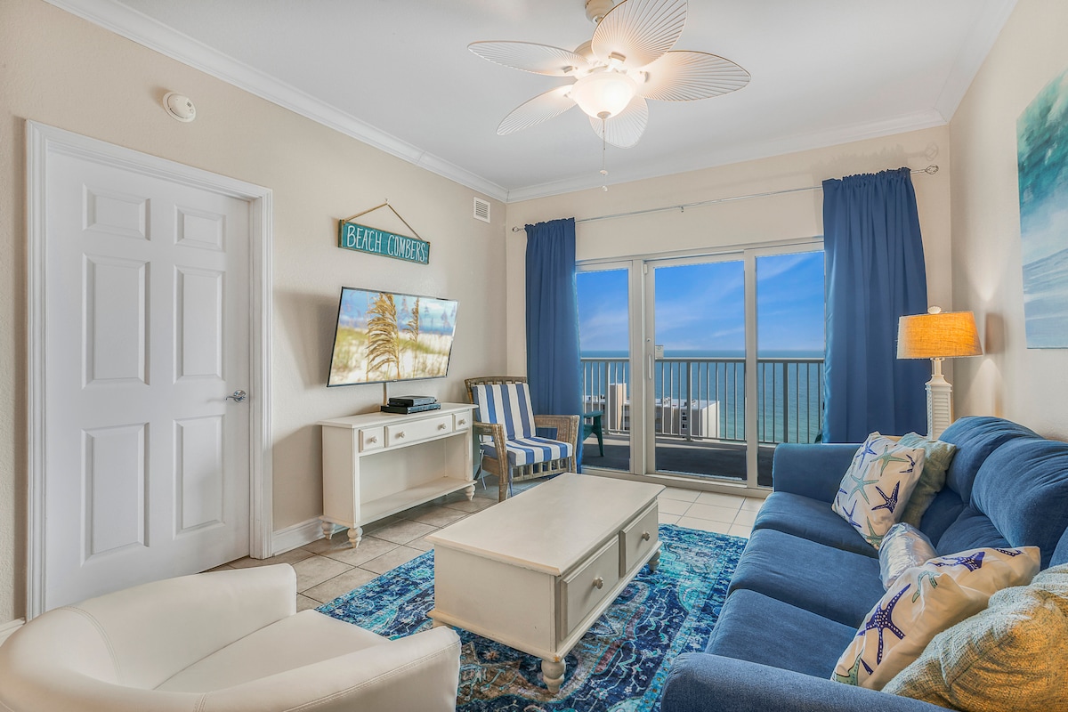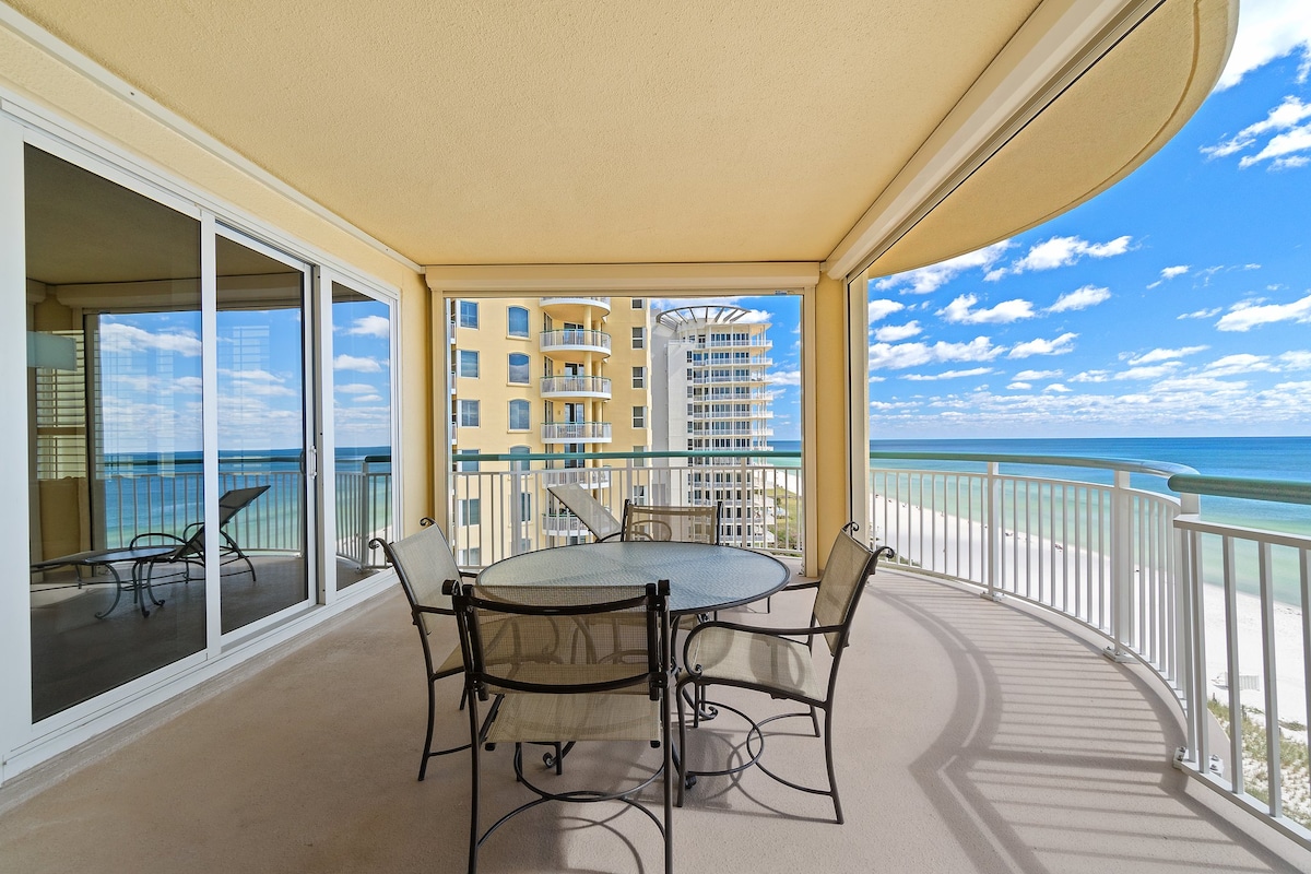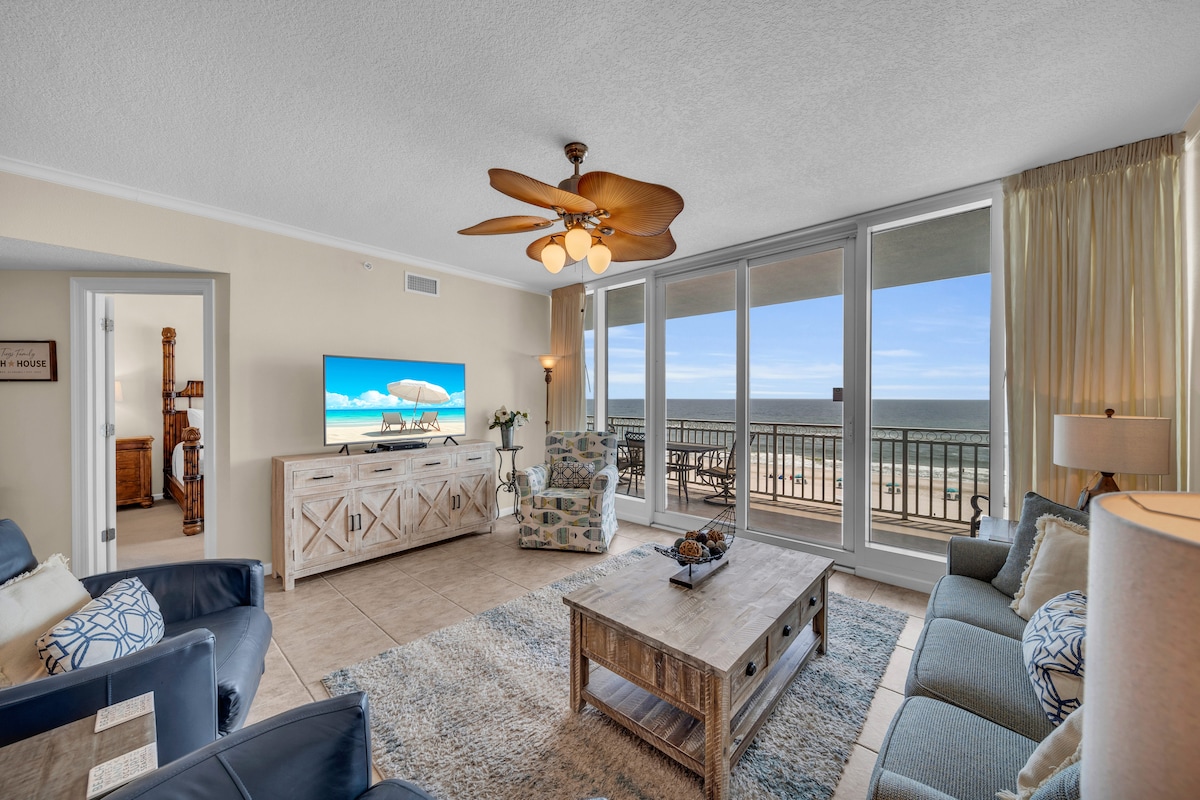 You'll love this spacious 3BR/2BA Beach front condo! Easy accessible to sugar white sandy beaches-just a short boardwalk! You'll love the beautiful ocean views and pool views from both the living room and master bedroom! Both rooms have sliding glass door entrances to your gulf front balcony, equipped with a patio table and chairs. You'll enjoy sipping your morning coffee or having a glass of wine at sunset on the balcony while taking in the beautiful views of the Gulf of Mexico.