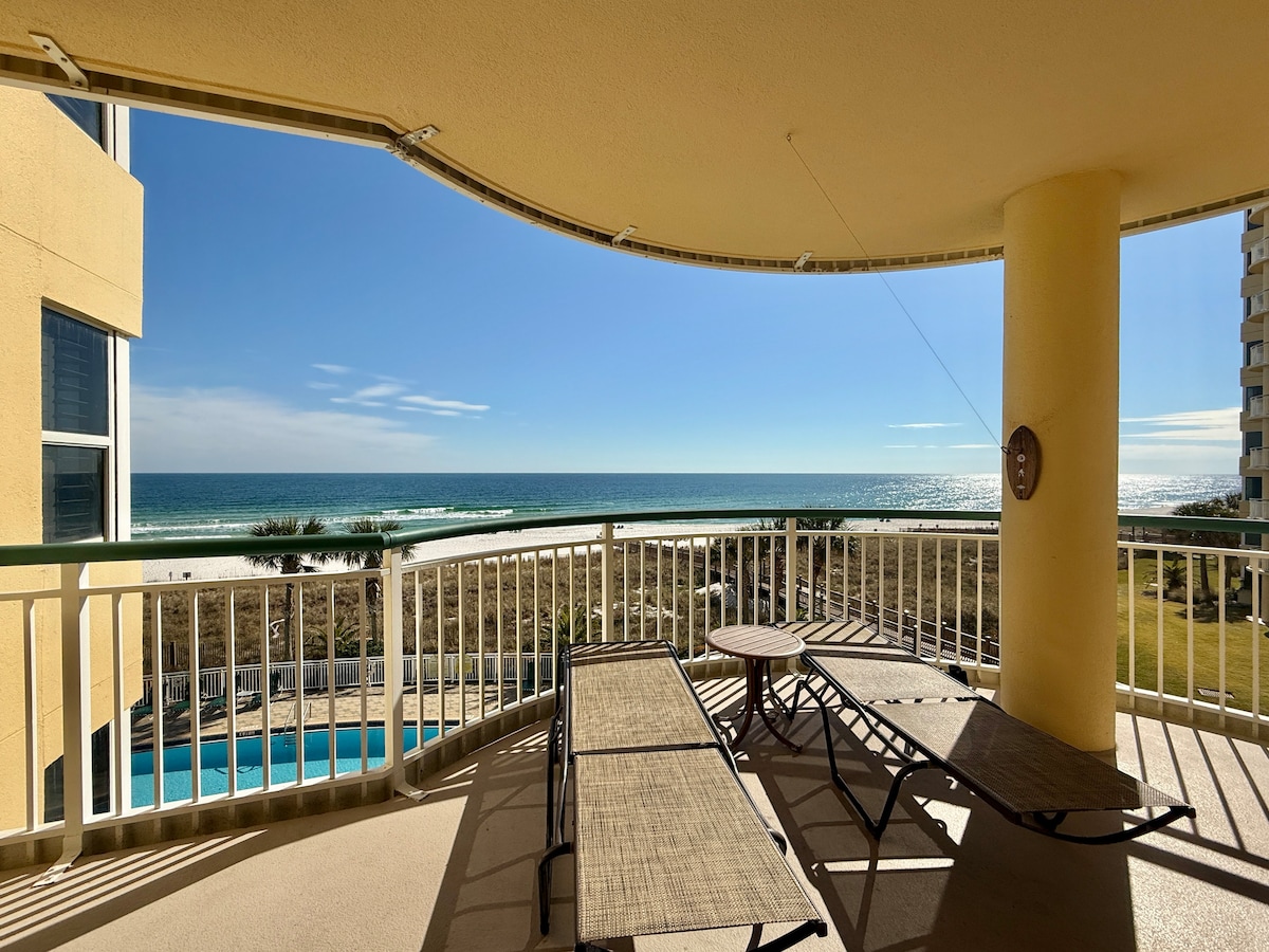 DON'T FIGHT THE CROWDS for space on the beach! Unwind in our comfortable 4th floor Beach Front "Slice of Paradise" with private beach. The balcony offers unobstructed, gorgeous views of the Gulf and the beautiful white sands of Perdido Key. Soak up the sun as you kick back on the balcony and count the dolphins while being lulled by the sound of the waves and the salt air breeze.