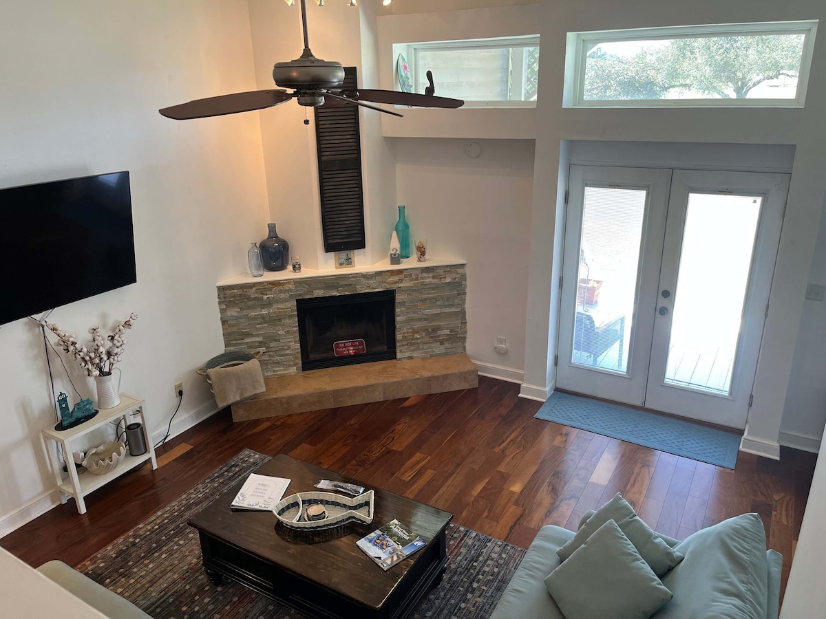 Welcome to the "Treehouse." Its a HEALING place. Everyone that comes here falls in love with the view. This oasis is smack dab in the middle of town. The beach is a short 15-20 min. drive. Located 9 minutes from downtown with amazing shops, dining and museums. Three large bedrooms, two baths with a relaxing soaker tub. Not to mention balconies off the master bedroom and living room. The forest behind here will give you that seclusion feel, along with turtles, fish, and incredible bird life.