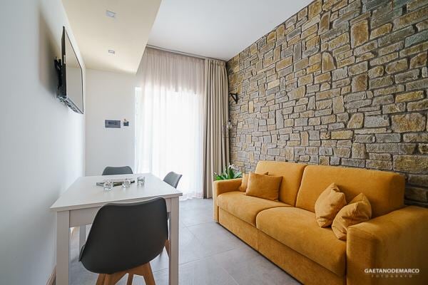 Olympia is an apartment of historical-artistic importance renovated and restored to protect and enhance the original ambience. The privileged and dominant position, close to the main tourist and cultural attractions of the Old Town, allows you to admire the Amalfi Coast and the sea from the wide windows. The double bedroom and the single sofa-bed in the living area can accommodate up to 3 people. With Julius Studio is part of Trotula Charming House and can accomodate up to 6 people.