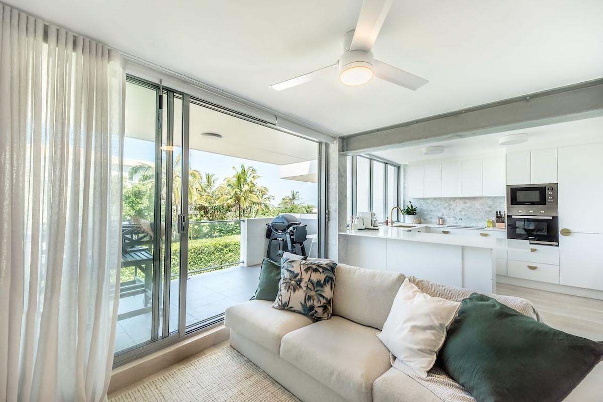 Romantic beachfront apartment with panoramic views over Coolum’s bays. Linger longer over ocean sunrises, soak in the bath as waves roll in, or enjoy coffee on your private balcony above the surf. Perfect for a few slow days by the sea, this modern open-plan retreat blends luxury and comfort in a peaceful coastal setting. Wander the scenic boardwalk, explore hidden beaches, and stroll to local cafés. Unwind on the sand at First and Second Bay, just steps from your door.