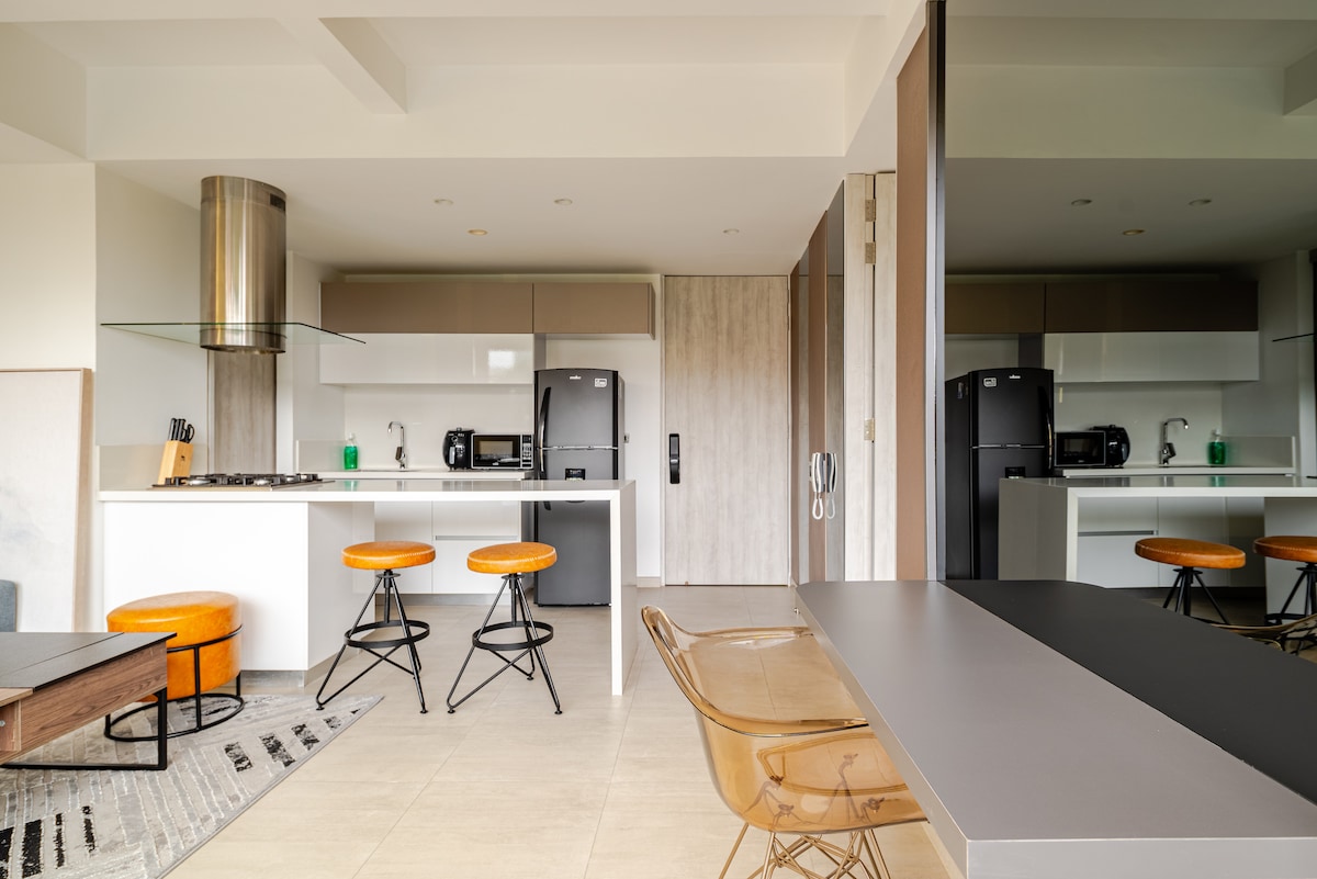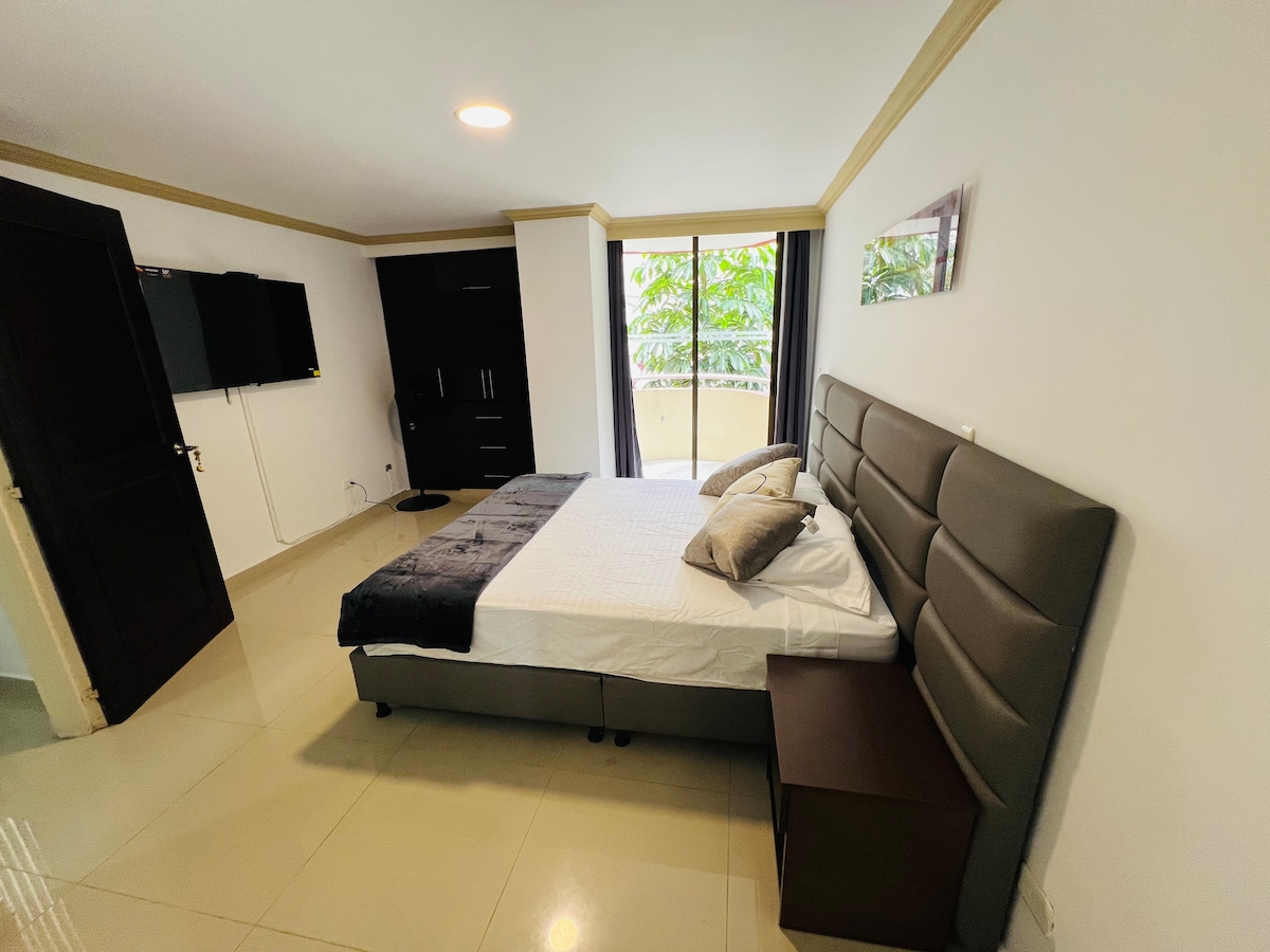 Apartamento con todas las comodidades en Pereira, ubicación privilegiada en la circunvalar, en edificio moderno, cerca al centro comercial Arboleda, al lado del "Club del Comercio", con aire acondicionado (Pereira es una ciudad de clima cálido), TV de 65 pulgadas, ventanas insonorizadas, cama queen, parqueadero cubierto privado y todas las comodidades para tu estadía óptima en el eje cafetero. Estratégicamente ubicado, a poca distancia de restaurantes, cafés, supermercados y vida nocturna