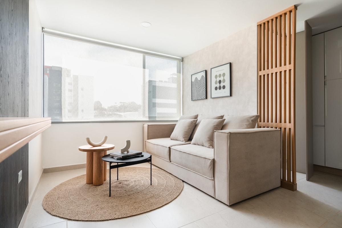 Apartamento moderno, luminoso y acogedor, con balcón integrado y un ambiente cómodo para relajarte o trabajar. Su diseño funcional, la excelente luz natural y el equipamiento de calidad crean una estancia confortable desde el primer momento. Cuenta con fibra de alta velocidad y wifi de hasta 950 Mb, ideal para teletrabajo y streaming. Ubicado en una zona céntrica con restaurantes, cafés y servicios cercanos, perfecta para disfrutar de la ciudad con comodidad.