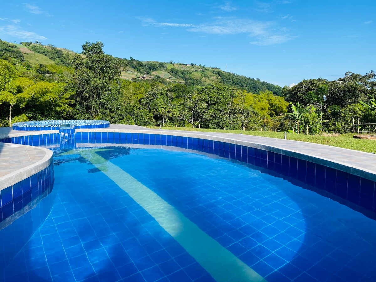 Casa de descanso, perfecta para grupos grandes! Nuestra casa de alojamiento ofrece espacio y comodidad. Con habitaciones amplias espacio abiertos y frescos cocina bien equipada y áreas comunes acogedoras, es ideal para reuniones familiares, grupos de amigos o equipos de trabajo. ubicación céntrica para explorar los mejores lugares de la ciudad. Jacuzzi Piscina Salón de eventos Sala de cine Discoteca Zona bbq Wifi TV Cancha de futbol 5 Atardeceres únicos cafeteros Malla Catamaram Parqueadero