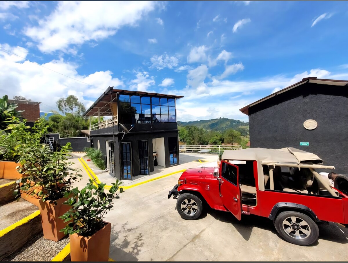 Immerse yourself in an exclusive and deeply sensorial experience at Casa Río, a modern villa suspended above the mountain, where design and nature intertwine seamlessly. A prime location in the center of the Coffee Region. - 22 minutes to the International Airport - 20 minutes to Expofuturo - 22 minutes to Ukumari - 25 minutes to Cerritos del Mar Mall - 44-57 minutes to Finlandia/Salento-Valle del Cocora - 55 minutes to Panaca - 1 hour to the Coffee Park