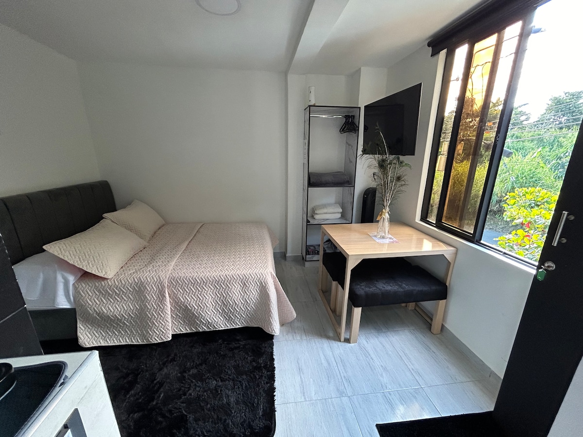 Disfruta de la sencillez de este alojamiento . Se encuentra ubicado a 8 minutos del aeropuerto Matecaña y a 15 minutos del terminal de transporte. Cerca a gimnasios, mall de comidas, supermercados y centro comercial unicentro. Está ubicado a 45 minutos de los pueblos turísticos de nuestro eje cafetero, cómo Filandia, Salento, Parque del Cafe, Quimbaya y otros. A 1 hora de termales de Santa Rosa. ESPACIO Cómodo apartaestudio, completamente independiente. Ducha agua caliente.