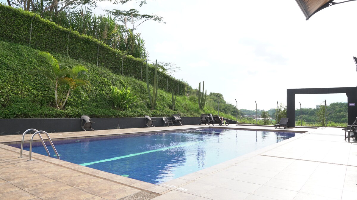 Descubre la comodidad y la placentera estancia en nuestro impecable apartamento Ubicado en un tranquilo conjunto residencial con vistas a las montañas, cada día será un paraíso al despertar. Disfruta de las comodidades que ofrecemos: piscina, cancha, parque infantil, lavandería, estacionamiento privado y vigilancia las 24h. El apartamento está equipado con todo lo necesario, incluido wifi, te hará sentir como en casa, incluso estando lejos de ella. Bienvenido a tu refugio de serenidad y confort.