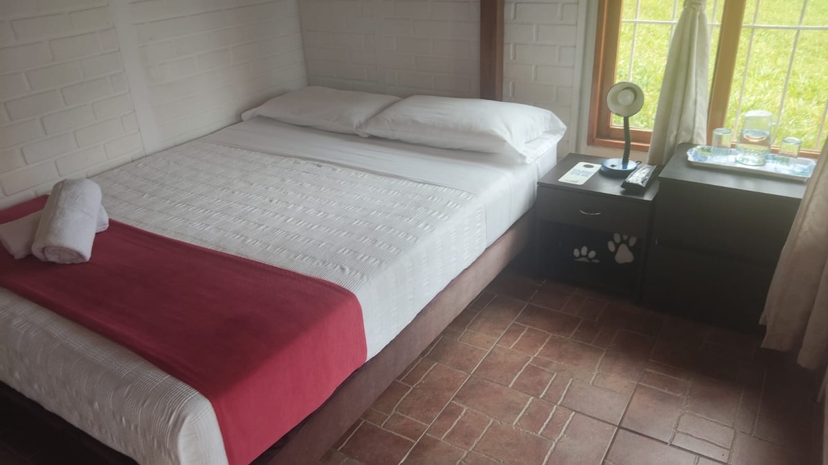 Habitación familiar ubicada en la reconocida Finca Turística Villa Bernal. Habitación con capacidad hasta de 3 personas (2 camas) Baño privado, TV. Disfrute de un baño en nuestra piscina mientras contempla los famosos atardeceres dorados del Paisaje Cultural Cafetero. Estamos a poca distancia en auto a Quimbaya, Armenia y Pereira, permitiendo fácil acceso a parques temáticos y más. Disfrute de la belleza y la paz de Ulloa, el corazón cafetero del Valle.