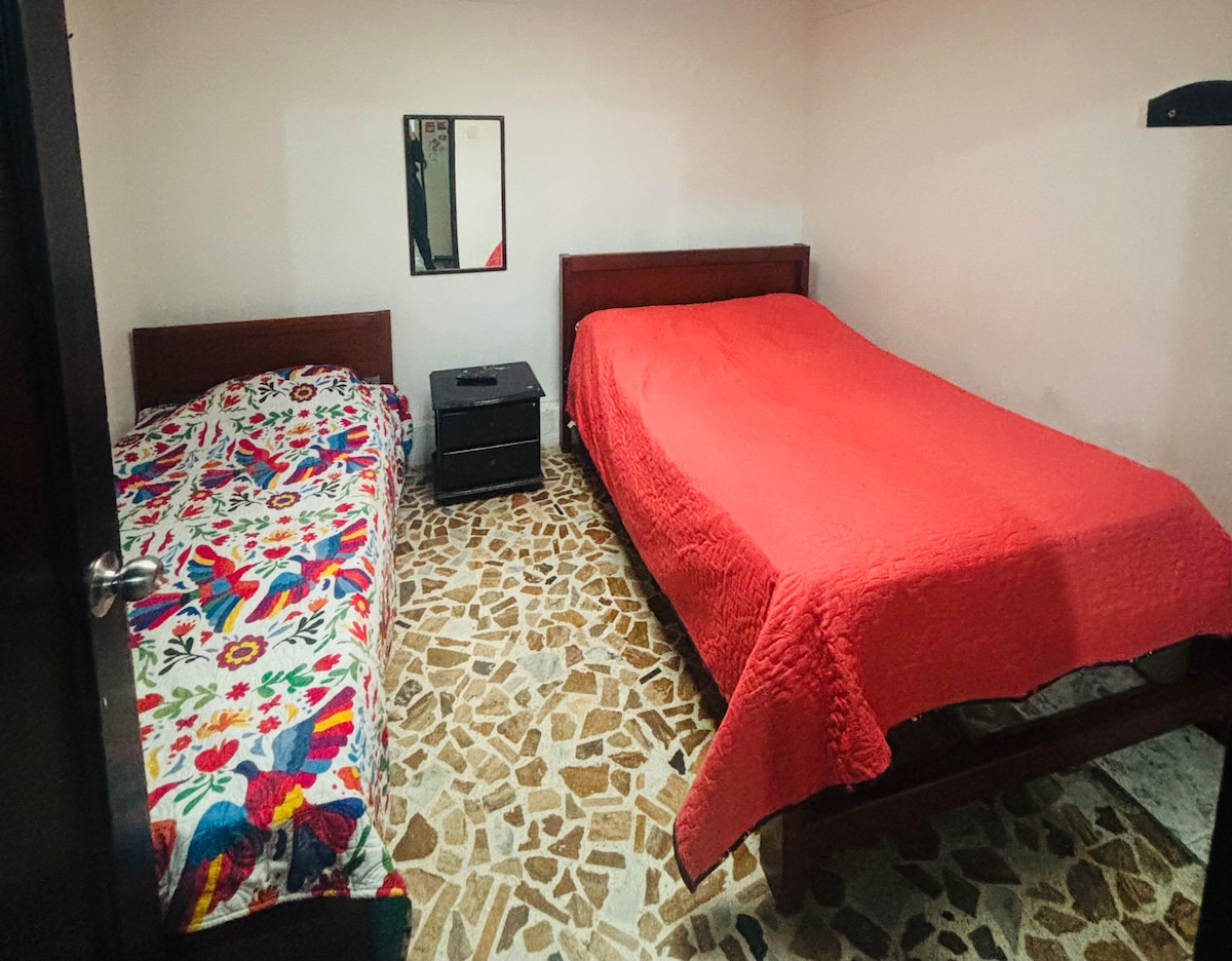 Habitación acogedora en el Hotel Montana, ideal para viajeros solos. Cuenta con una cómoda cama semidoble, baño privado, televisor Smart y ventilador. Estamos ubicados en la zona comercial del barrio Cuba, con fácil acceso a tiendas, restaurantes y transporte; a 5 minutos de Unicentro, Expofuturo, el Estadio y 10 minutos del aeropuerto. Perfecta para descansar después de un día de turismo o trabajo. Espacio limpio, tranquilo y funcional, pensado para una estancia práctica y confortable.
