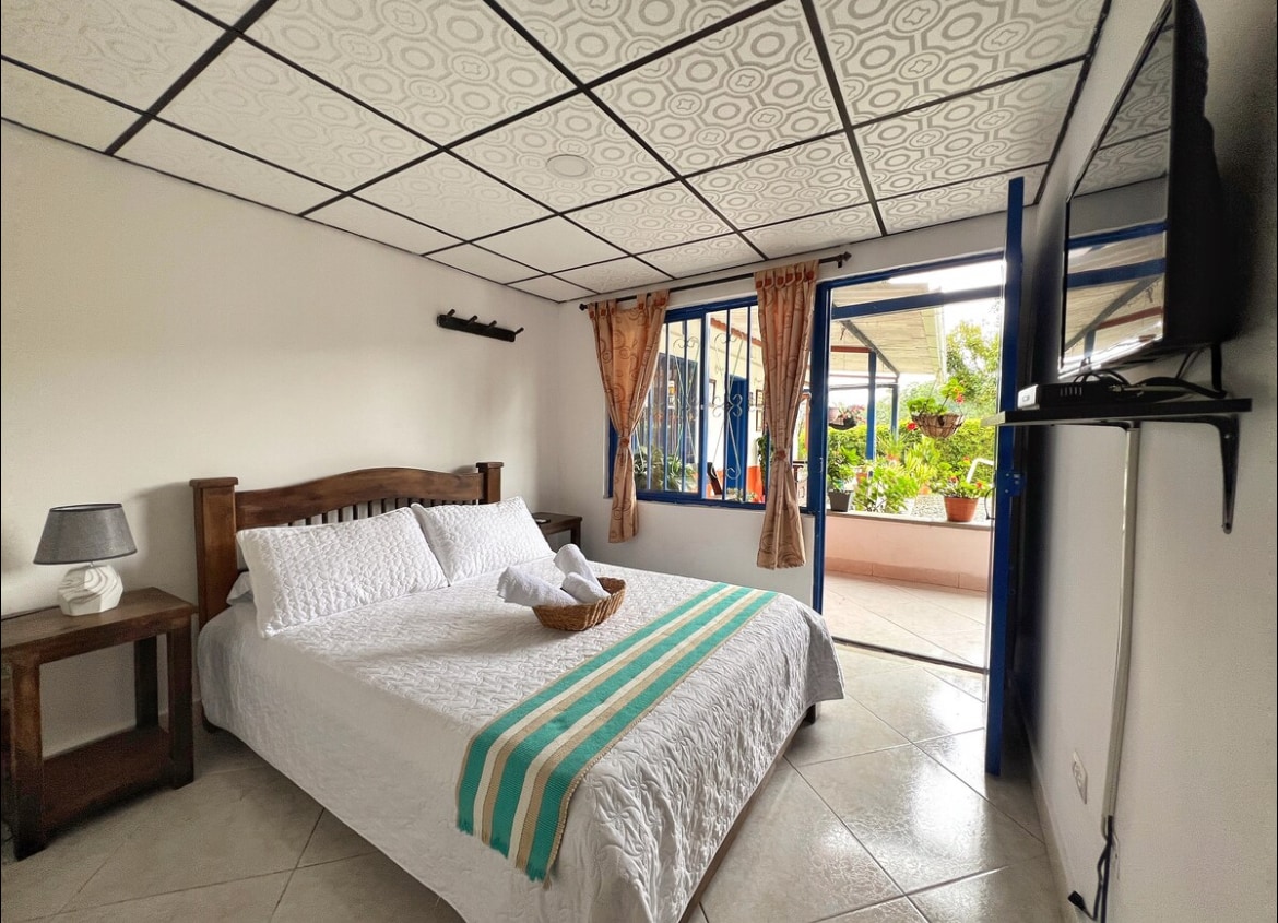 Disfruta de una moderna y confortable habitación, ideal para pareja o persona sola, y disfruta de un delicioso café de especialidad en nuestro hotel cafetero, quedamos sobre toda la via a los termales de Santora y San Vicente, con nosotros consigues la entrada para ambas Termas, nuestro personal te recomendará sitios turisticos de nuestro hermoso pueblo y el eje cafetero!