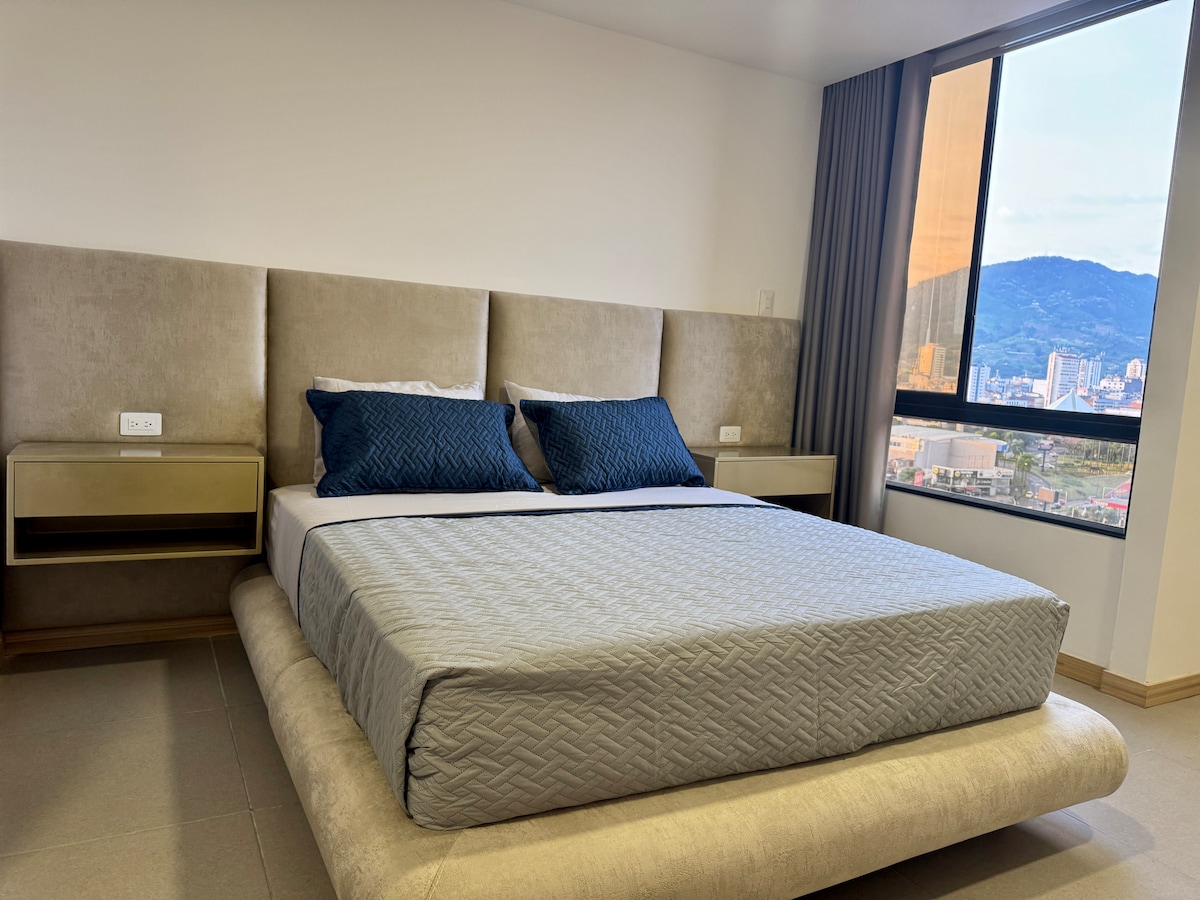 Relax and enjoy a comfortable and modern space. Watch your favorite movies or series on a 4K TV without leaving the bed. Share a glass of wine on the balcony while admiring a beautiful view of Pereira. You’ll be just steps from Circunvalar, surrounded by restaurants, cafés, and bars. Explore the Coffee Region with our guidance. The building offers a pool, washer, dryer, and an ideal location close to Megacentro Pinares.