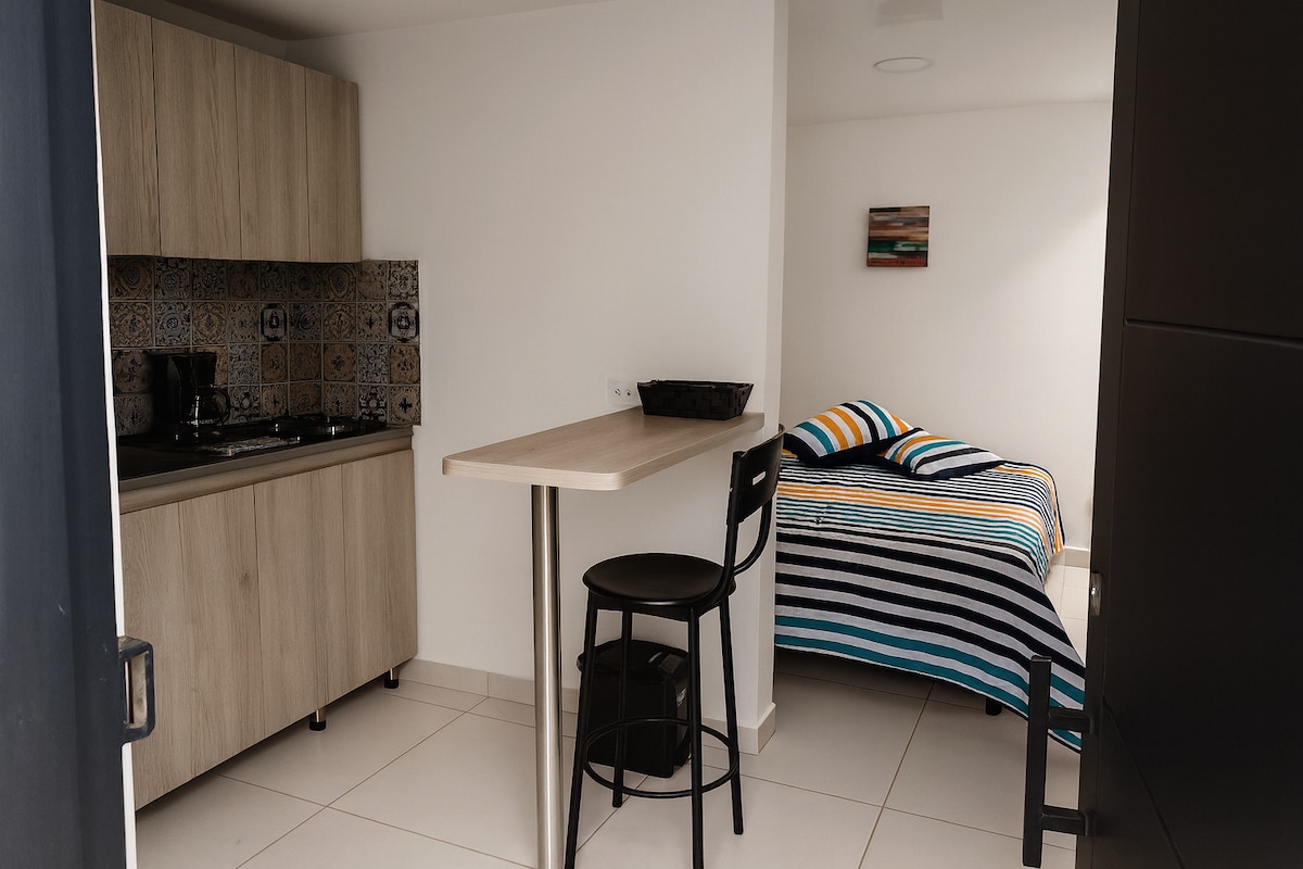 Disfruta de la sencillez de este alojamiento tranquilo y céntrico, ubicado en uno de los mas lindos y seguros barrios de la ciudad, estrategicamente a 8 minutos caminando de la terminal de buses, asi como a distancia caminable de tiendas, droguerias y restaurantes. Ubicado en el segundo piso de una casa y tendrá acceso autonomo mediante cerradura inteligente. El estudio cuenta con una cama Queen , una cocineta basica, baño completo y un amplio y luminoso balcon.