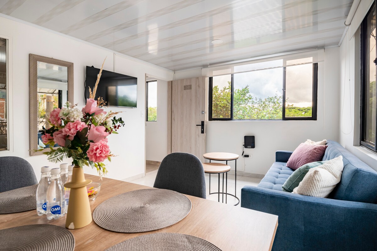 Tu hogar temporal en Pereira. Apto en primer piso, cómodo, cálido y Pet Friendly. Imagina despertar con luz natural, preparar tu desayuno en la cocina equipada y disfrutar un café en la sala mientras tu mascota descansa a tu lado. Además, estarás muy cerca del Estadio, Expofuturo y otras zonas clave de la ciudad. Con Wi-Fi rápido y espacios confortables, es perfecto para desconectar o trabajar remoto sin interrupciones.