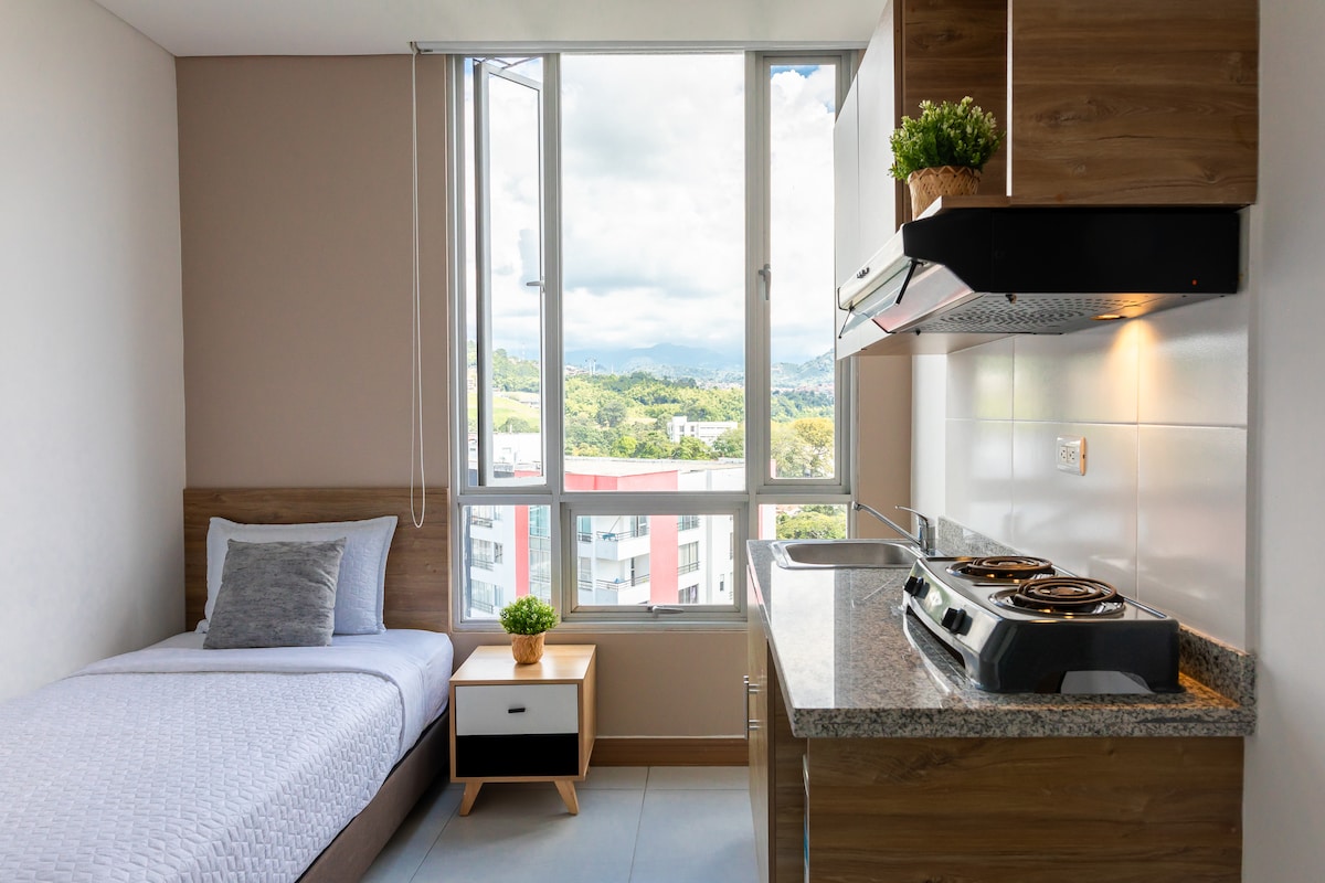 Vive la experiencia de Plaza U en este apartaestudio del sexto piso en Pereira, ideal para tu comodidad. Equipado con: 🛏️ Cama para un descanso reparador. ✍️ Escritorio para trabajar o estudiar. 👕 Closet, 🍳 cocineta equipada y 🚿 baño privado. Incluye: Wi-Fi de fibra óptica, coworking, sala de juntas, terraza y lavandería. MUY cerca de la Universidad Tecnológica de Pereira, clínicas, centros de belleza, tiendas, restaurantes y un Oxxo 24 horas. ¡Perfecto para conectar y descansar! 🚀