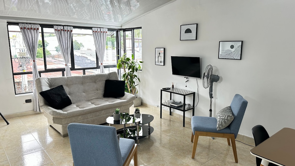 Disfruta de una experiencia con estilo en este alojamiento céntrico en la trasnochadora, querendona y morena. Ubicado en una zona tranquila y segura, donde encontrarás supermercados, farmacias, bancos, parques, restaurantes y bares a menos de 3 cuadras. También hay buena locomoción sobre la carrera donde se encuentra ubicado. El hospedaje está bien dotado de toallas, implementos de cocina y artículos de higiene como jabón y papel higiénico lo que harán de tu estadía algo muy práctico y cómodo.