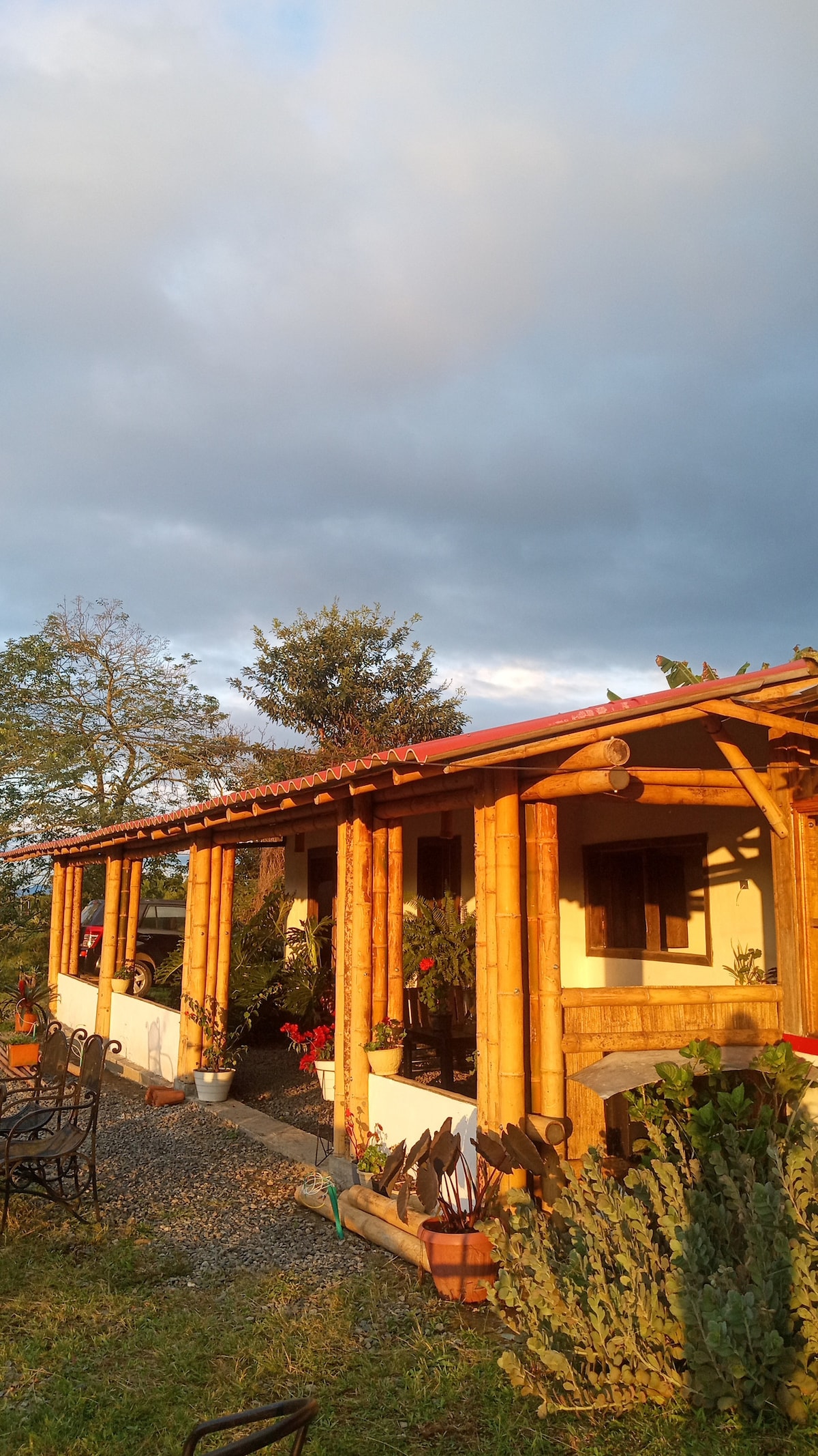 Situé dans notre plantation de café bio, la cabaña est construite en bambou et bois et profite d'une vue exceptionnelle sur les montagnes et le coucher de soleil. Elle dispose d'1 salle de bain, 1 chambre lit double, un espace salon et sa petite terrasse suspendue. Situé à 6 km de Filandia, accessible par les jeeps collectives ou privées ou en vehicule pas trop bas. Nous proposons un coffe tour, dégustations de nos produits artisanaux (pain, confitures, fromages type français, tartiflette, etc)