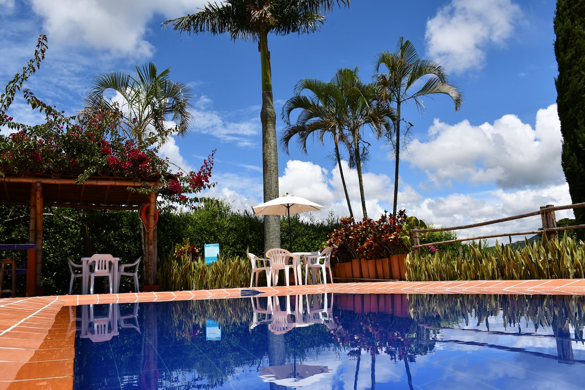 🔥THE BEST JACUZZI IN THE AREA 🔥 20 minutes from Pereira’s city center, enjoy with your family the tranquility of the countryside with stunning views, a huge jacuzzi with hydromassage, family and table games and a cozy catamaran net Start your mornings with Colombian coffee, Warm and delicious breakfast (additional) and the views that only this place offers. Need transport? We’ll arrange a driver for you Stay 3+ nights and get exclusive discounts. Live the magic of the Coffee Region—book now!