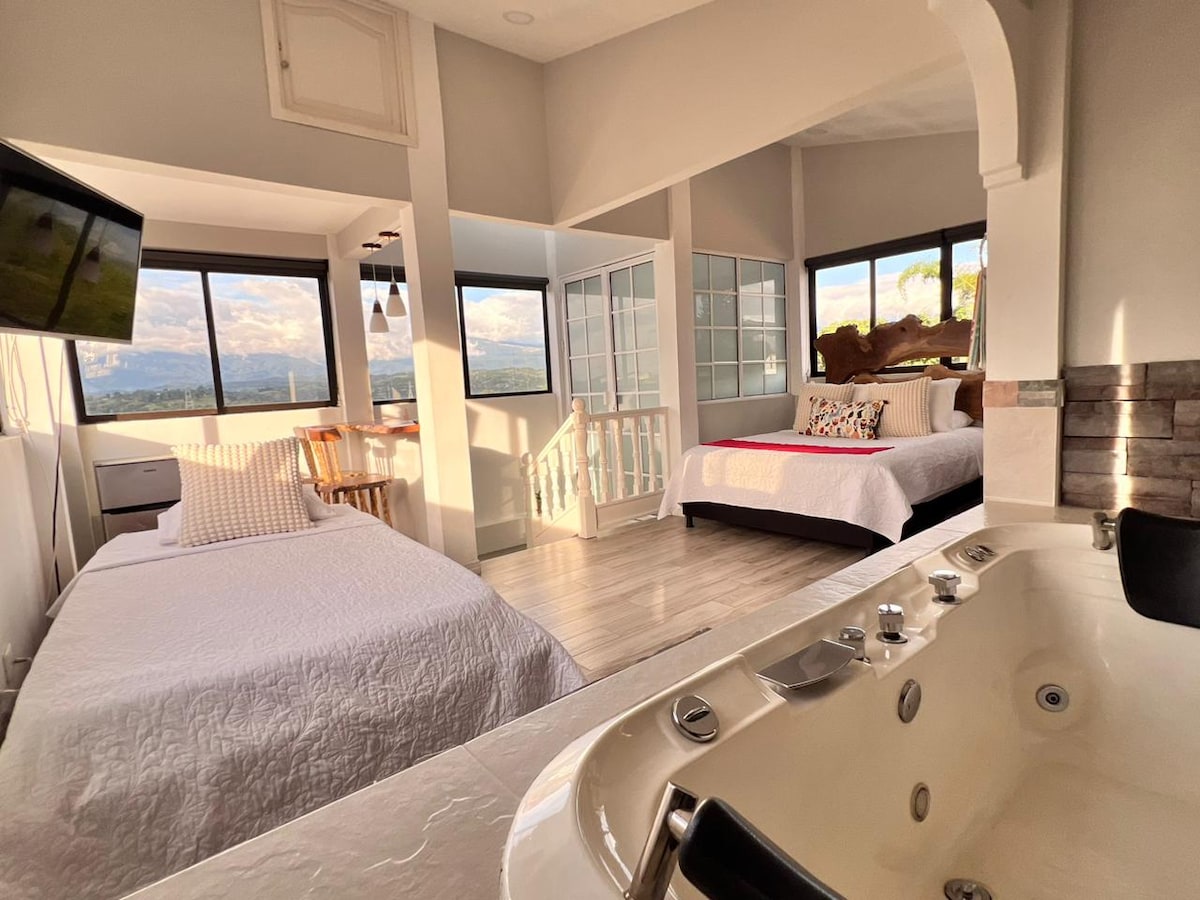 Disfruta de nuestra Suit de lujo con un espectacular jacuzzi y diversas amenidad y deléitate con el sabor de nuestro café de especialidad, para que tu paso por los termales de santa rosa sea el más placentero.