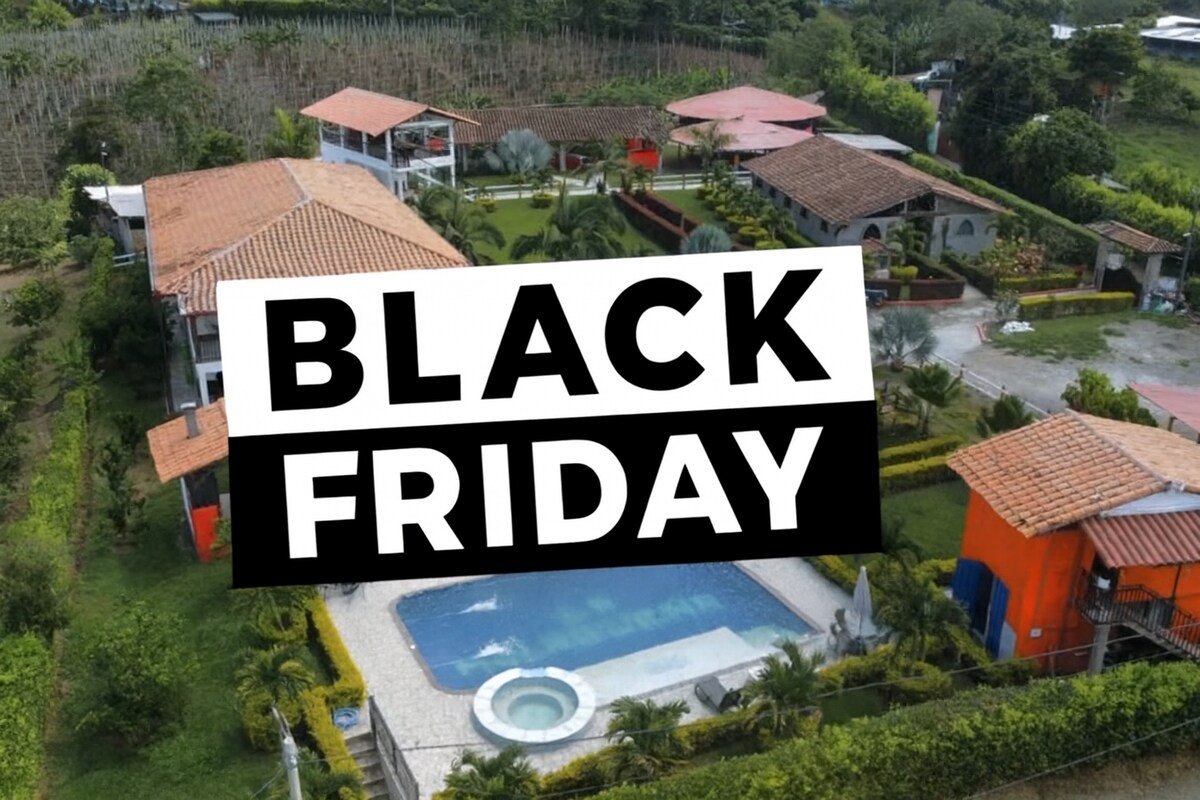 Country House in Pereira, Sector Cerritos, Easy Access. You will enjoy sunny days, tranquility, connection with Nature, and beautiful sunsets. Overlooking a spectacular guadual. Located 15 minutes from the International Matecaña Airport, with an excellent location to places of interest in the Coffee Region; 5 minutes from the best food malls in the city, supermarkets. Perfect place to enjoy with the family. With heated Jacuzzi, BBQ area, wood oven for pizza. Campfire area. Pet Friendly.