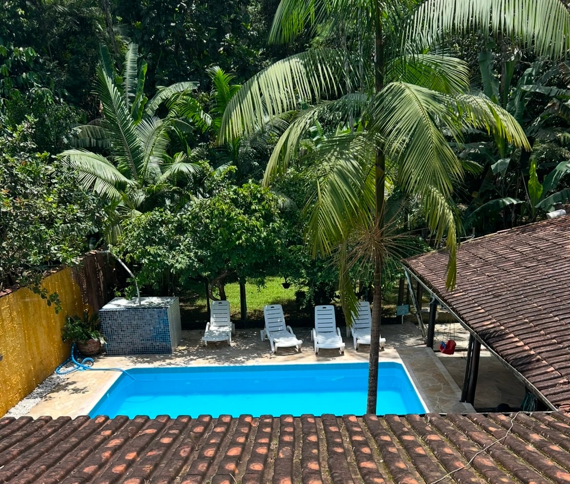 Nossa casa foi totalmente reformada, unindo conforto e beleza ao estilo caiçara que tanto amamos. Ambientes amplos, sala e quartos com ar-condicionado, banheiros lindos ventilados. No jardim, um verdadeiro refúgio: chuveirões ao ar livre em meio à natureza, muitas plantas e frutíferas que atraem diversos pássaros, além de um riachinho que passa logo atrás do terreno. Cozinha completa, churrasqueira, 2 vagas de garagem. Rua muito segura, monitorada 24hs. Vem viver esse pedacinho de paraíso!