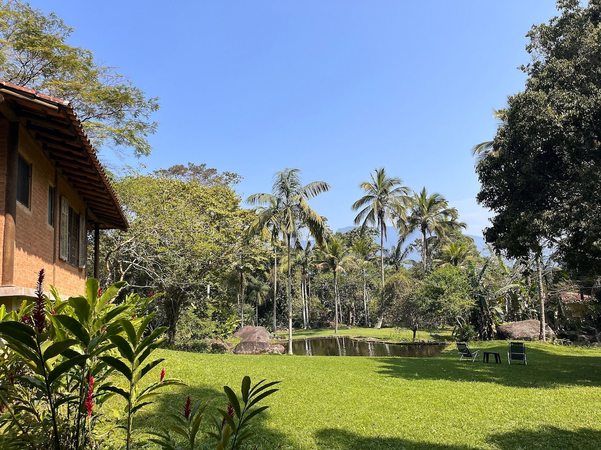Casa de 120 m² em meio à natureza do antigo parque aquático de Ilhabela, com 2 suítes aconchegantes com Smart TV 43" e ar quente/frio. Sala charmosa com Smart TV 65" e ar quente/frio. Cozinha completa com geladeira grande 430L Panasonic, Wi-Fi fibra 1000 Mbps e quintal privativo com churrasqueira e piscina natural privada. No andar superior, suíte com cama king com vista as estrelas, banheira e varanda. Varanda ampla com sinuca, rede e ponte para o mirante das cachoeiras.