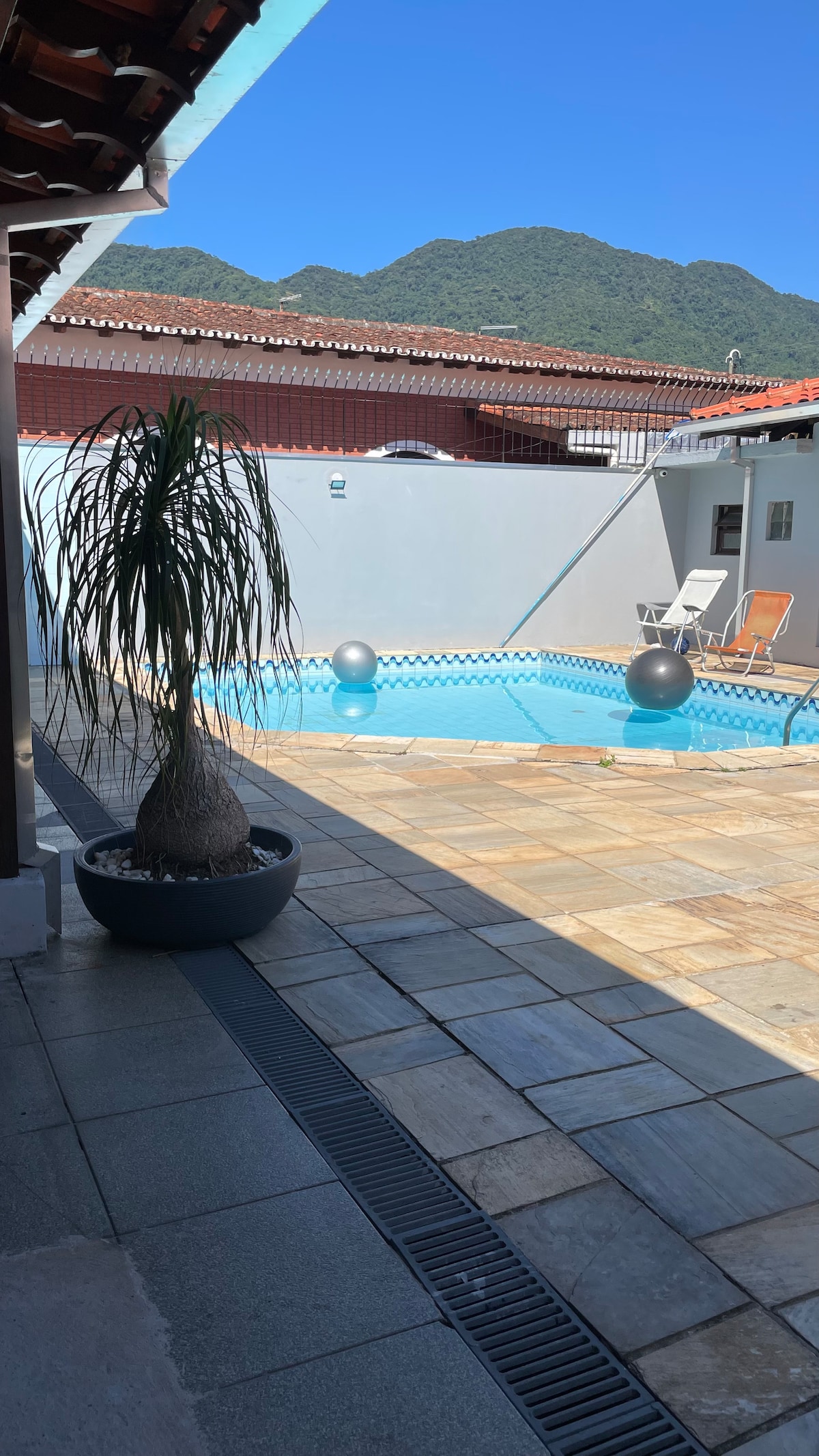 Charmosa casinha rústica localizada na praia do Perequê, numa rua sem saída a menos de 100 metros da praia. A casinha possui garagem, piscina compartilhada , churrasqueira e muita natureza ao redor! Uma casinha com 2 quartos sendo um deles um mezanino com cama de casal. Um quarto com cama de casal com saída para o jardim, cozinha completa, um banheiro, e uma sala com duas camas de solteiro que se localiza em baixo do mezanino. O espaço é Pet Friend (1) traga seu companheiro de quatro patas 🐾
