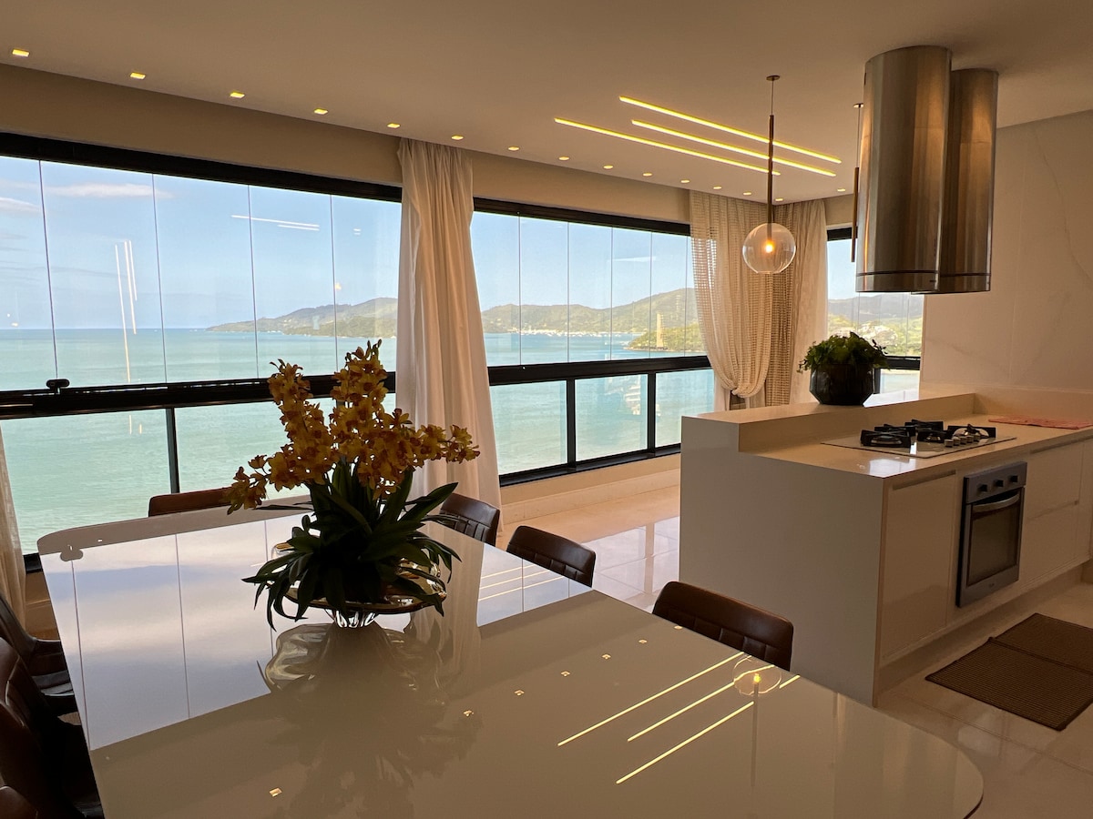 Apartamento novíssimo de alto padrão, Desceu do AP a poucos passos vc está na areia da praia, menos de 1 min. Sacada gourmet com uma vista incrível para o mar, todos os utensílios disponíveis para uma excelente estadia. São 3 quartos sendo uma suíte todos com ar condicionado e um bwc social. Praia de Pereque fica no município de Porto Belo conhecida pela famoso caixa d'aço onde ficam as lanchas, águas calmas e com uma ampla extensão de areia.
