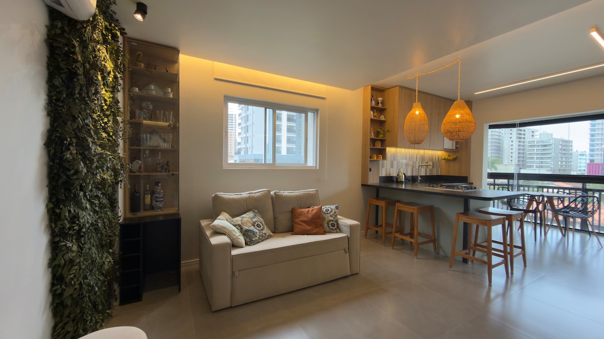 公寓100%空调,距离Perequê海滩550米