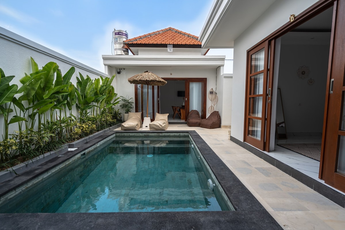 Enjoy a stylish experience at this centrally-located place. *Modern brand NEW 2 bedroom villa with loft design, private pool and Chill Area *Heart of Canggu,1.5km to ECHO BEACH(LA BRISA),1.6km to BATU BOLONG BEACH *Wifi Superfast 150 Mb/s fiber optic, perfect for work & streaming *SmartTV(Netflix,Youtube) *Large living room and modern fully equipped kitchen with all you need *2x comfortable bedroom with ensuite bathroom & Aircon *Parking *Near Crate cafe and Copenhagen
