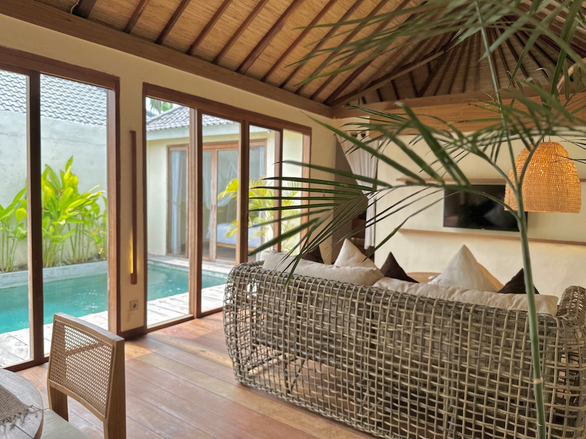 NEWLY AIR-CONDITIONED IN LIVING ROOM SPACE ❄️ Beautiful, Spacious and modern two-bedroom villa in the heart of Canggu. The property features an enclosed living room now with aircon ❄️ A fully equipped kitchen, and a private swimming pool and gardens. Each bedroom includes an ensuite bathroom, air conditioning and quality bedding. Only a few minutes walk away from Canggu's Finest Restaurants, Bars, Beaches, Spas, Gyms and Designer Boutiques, and only 5 min drive away to Pererenan.