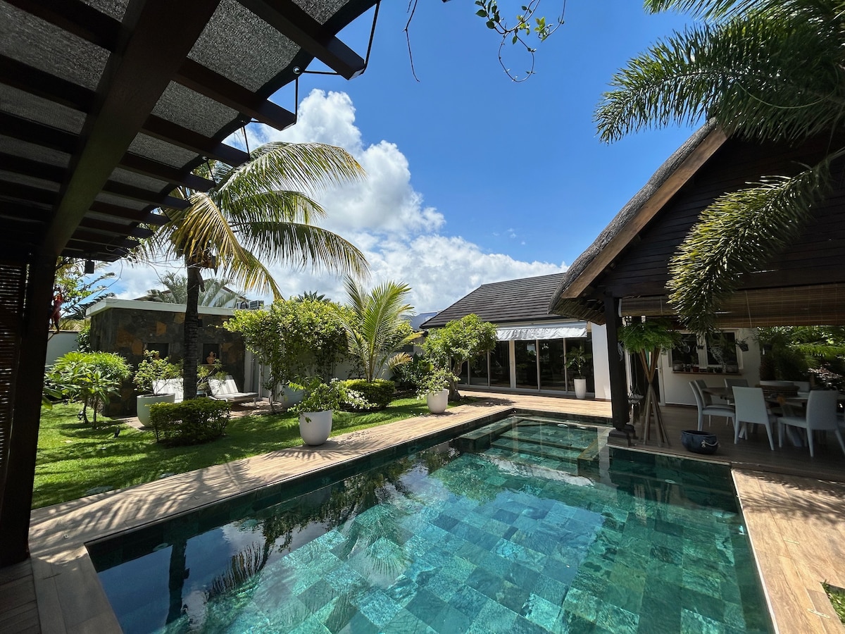 Come and enjoy our little Mauritian nest, an Art Deco-inspired villa designed by us for couples and individuals in search of tranquility. The villa is located in a peaceful environment filled with the melodies of birdsong, just a few minutes' drive from Trou-aux-Biches beach (voted as one of the top 3 most beautiful beaches in Mauritius in 2022) and all the essentials for a wonderful stay (supermarket, local restaurants, pharmacies...).